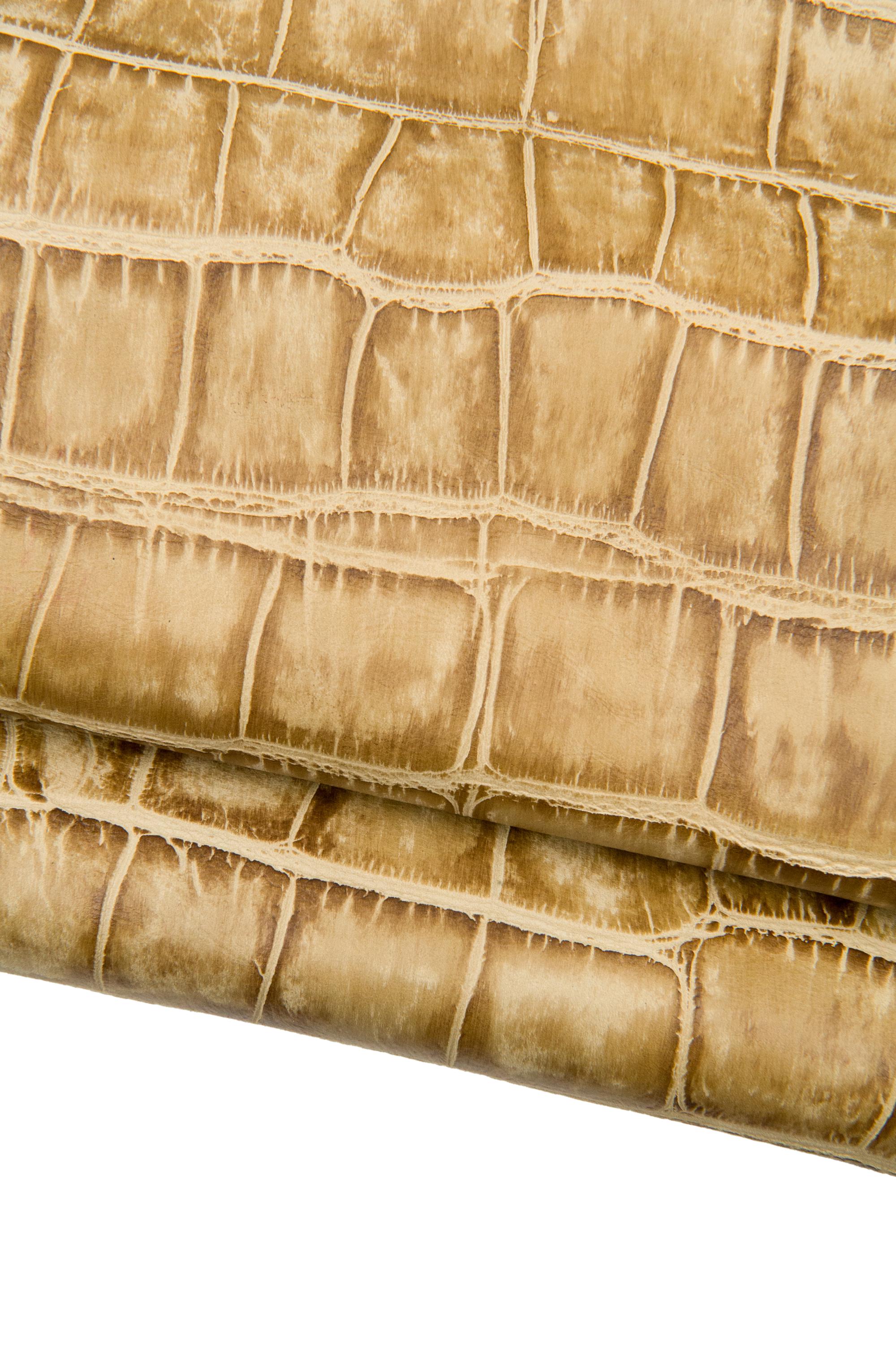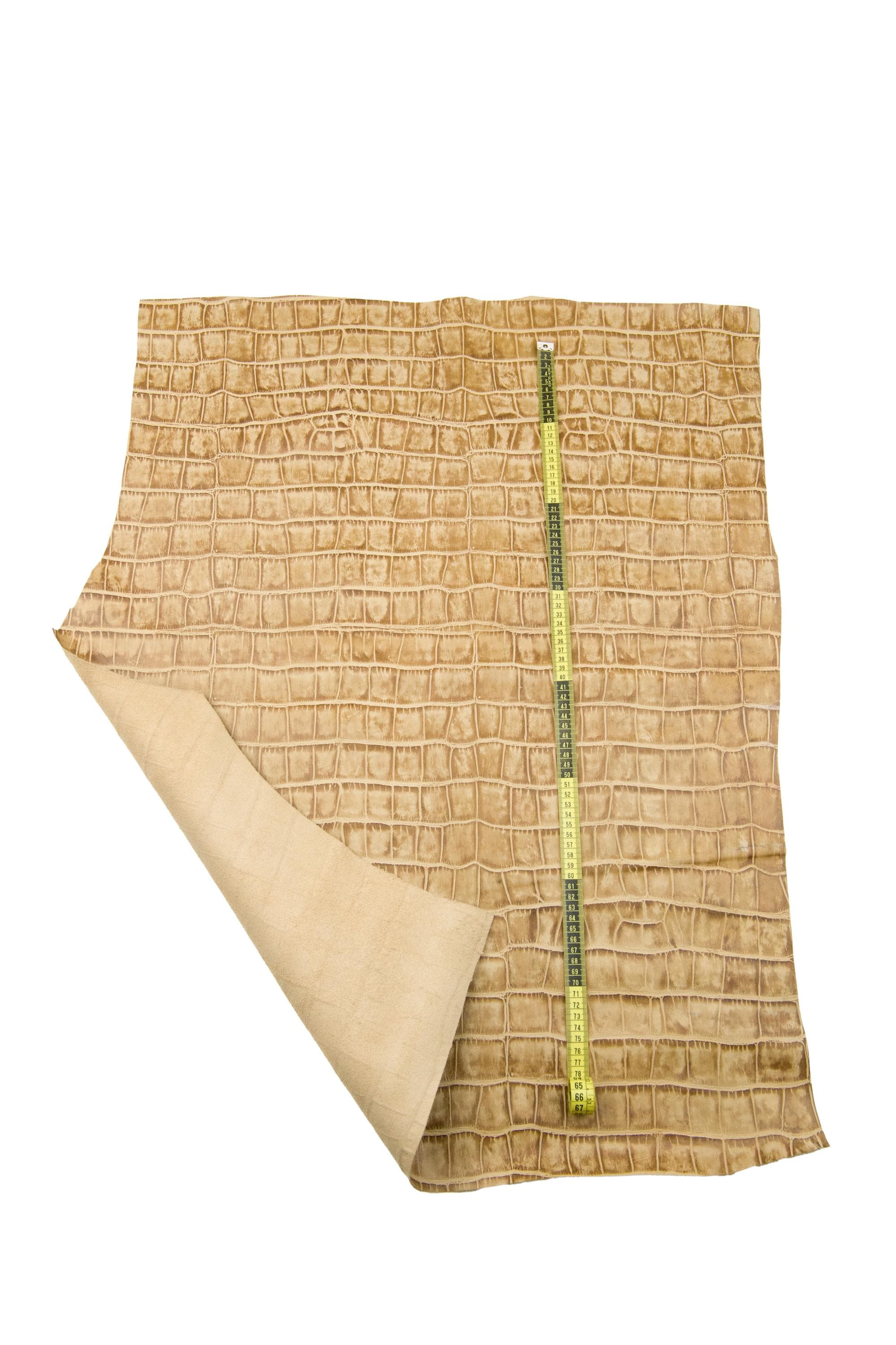Wonderful beige embossed leather hide, soft matt cowhide, alligator printed calfskin for crafters.