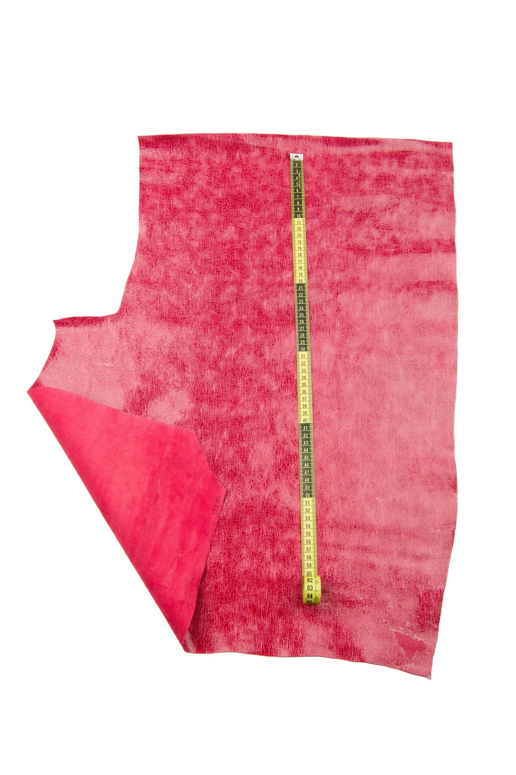 Fabulous red glossy printed leather hide, crackle texture on soft cowhide, metallic sporty calfskin for crafters.