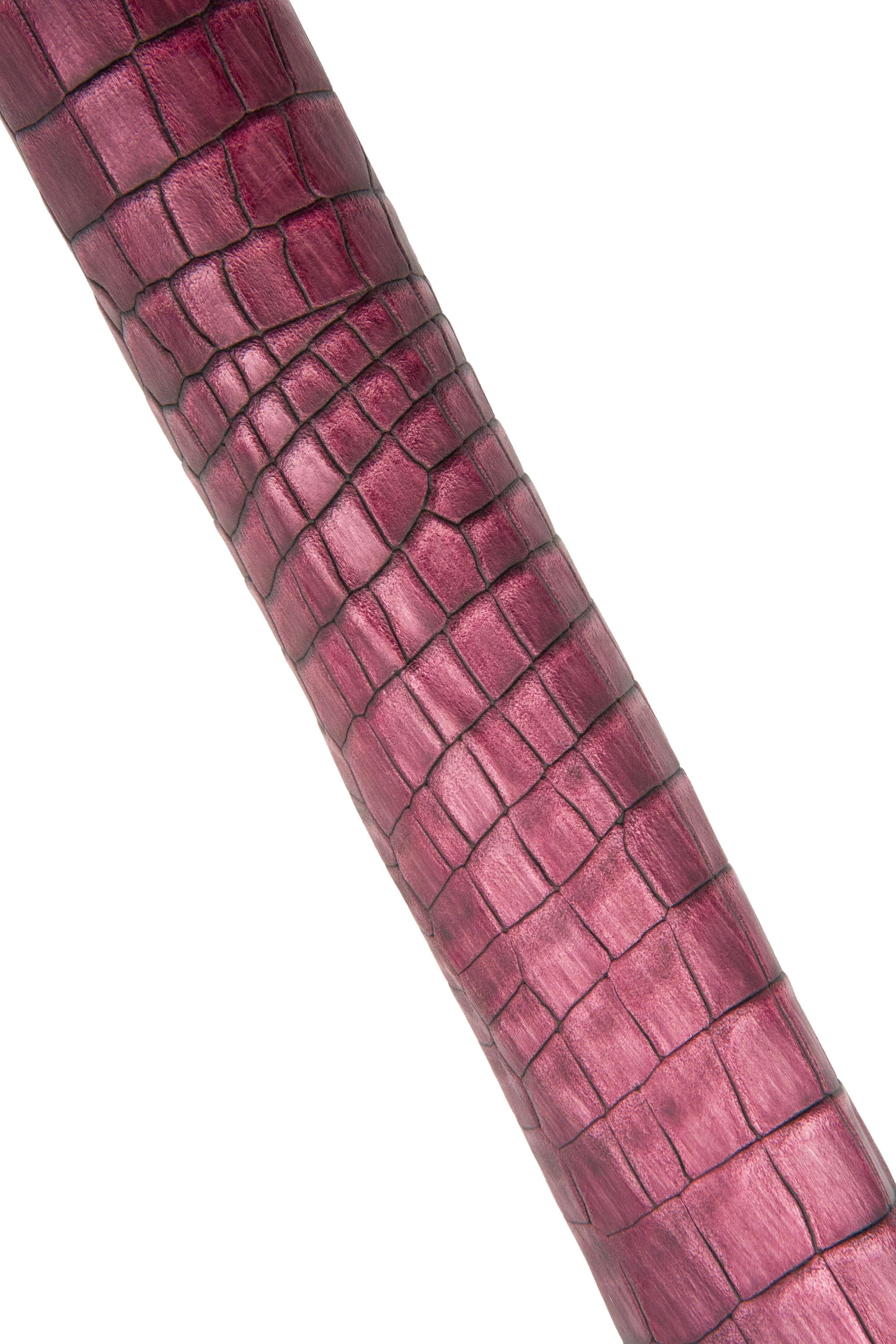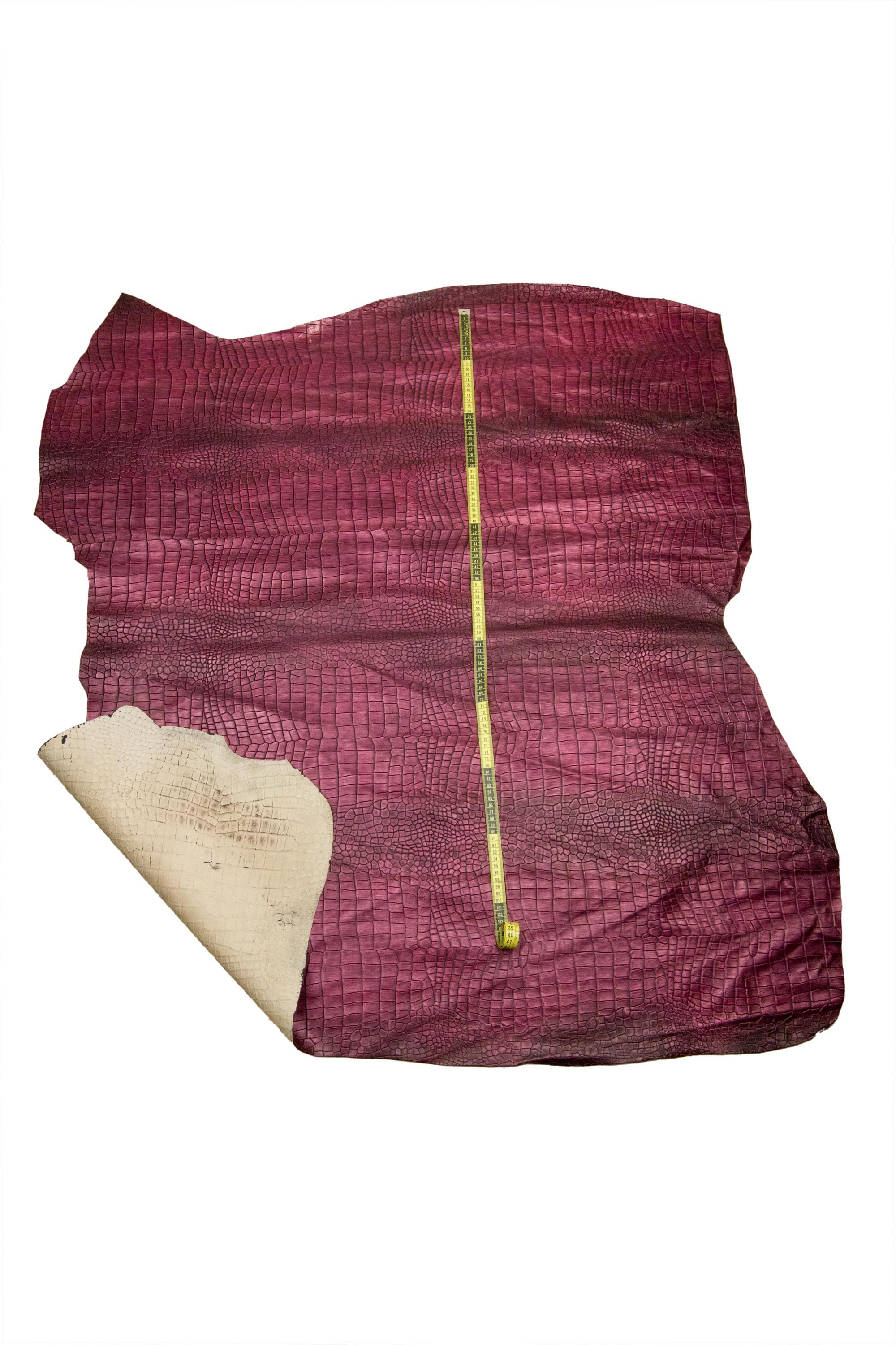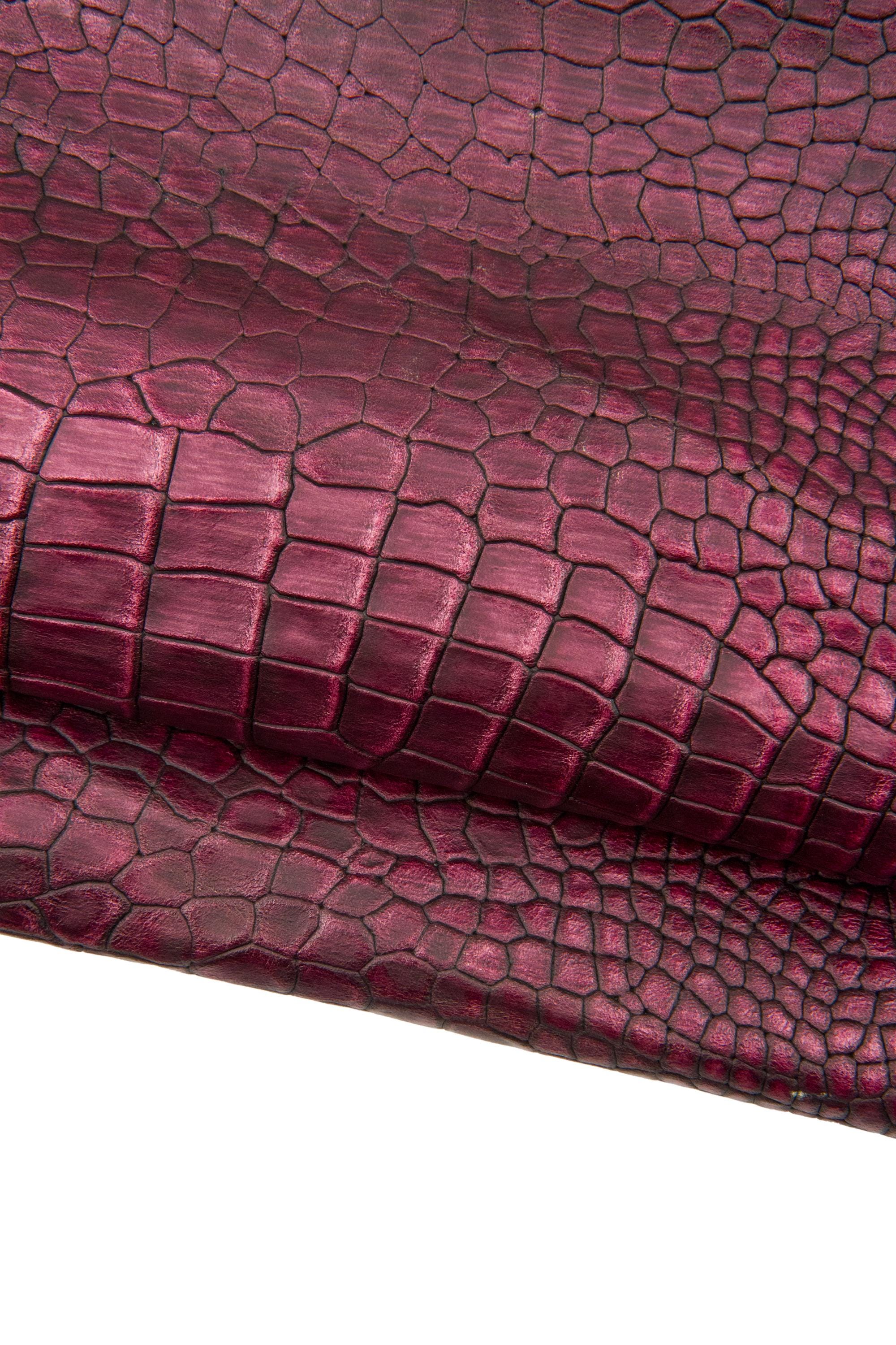 Incredible burgundy crocodile embossed leather hide, alligator print on calfskin, semi - glossy shaded cowhide for crafting.