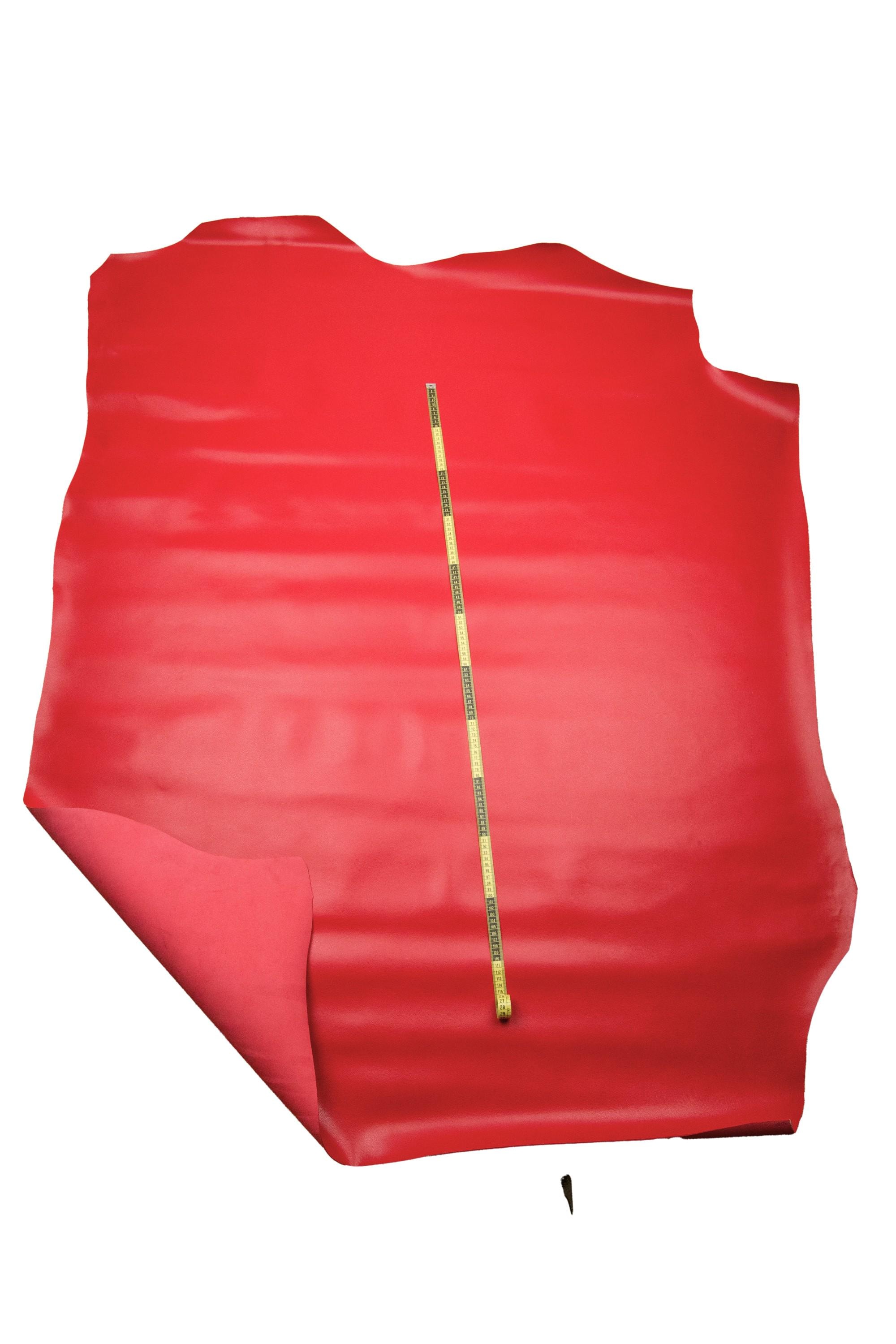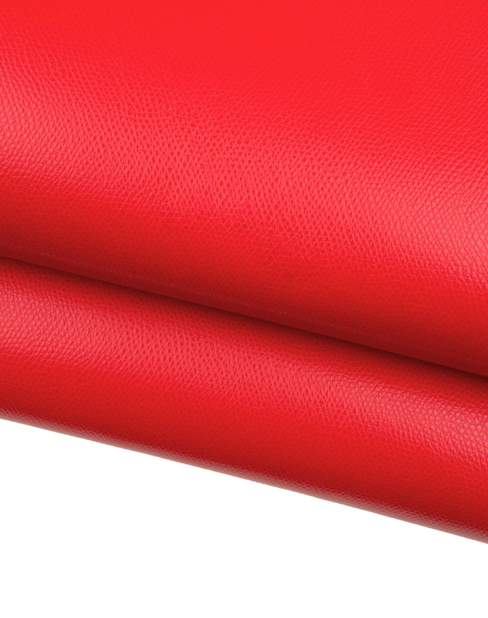 Particular red embossed leather hide, saffiano - like printed cowhide, glossy calfskin 1.4 - 1.6 mm, ideal for bags.