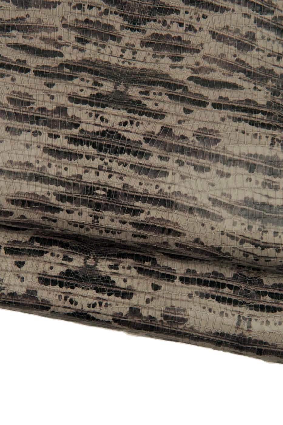 Stunning grey crocodile textured leather hide, reptile printed calfskin, animal pattern on glossy soft cowhide.