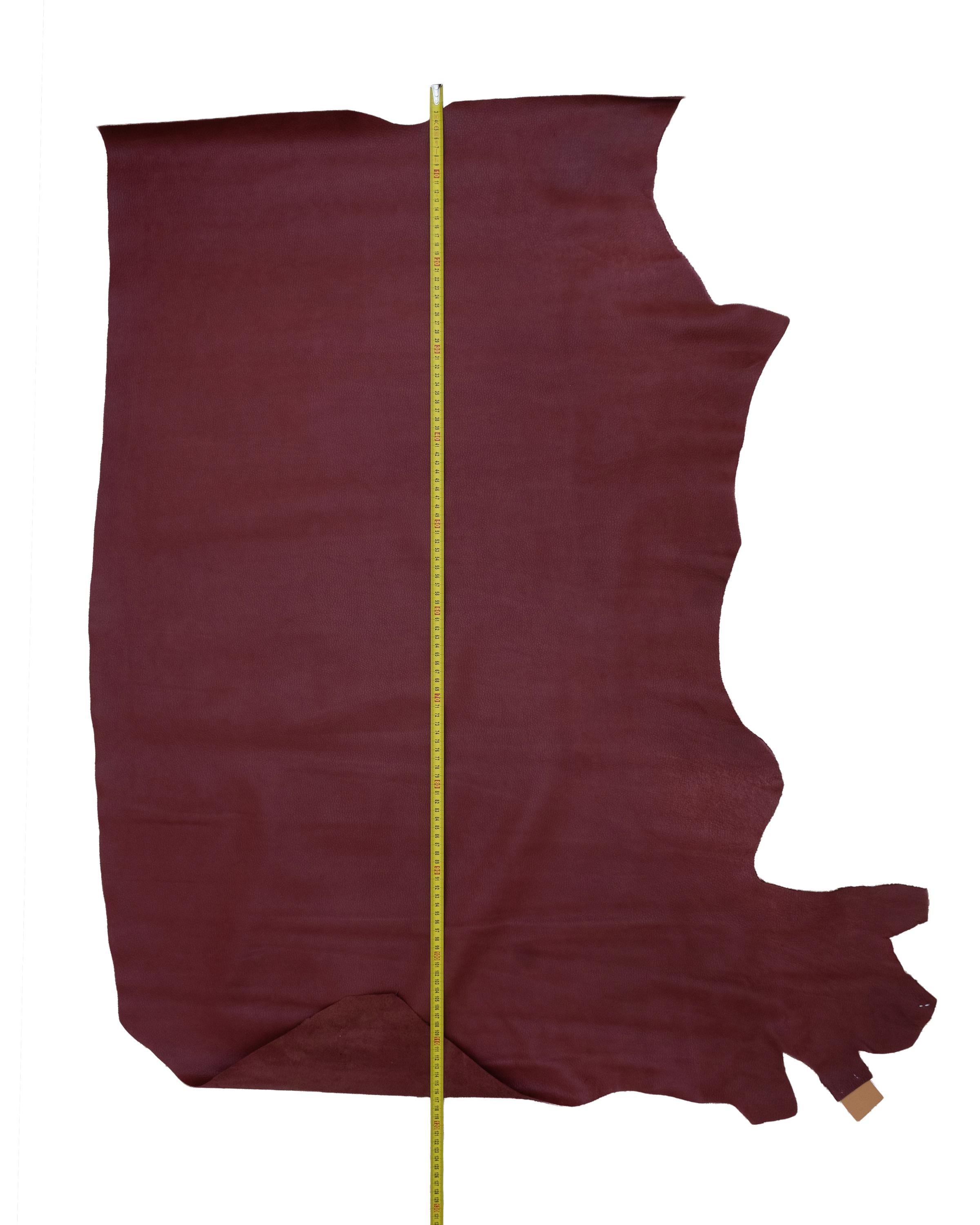 Fabulous burgundy red pebble grain printed cowhide, glossy leather hide, embossed pearlized calfskin for crafters.