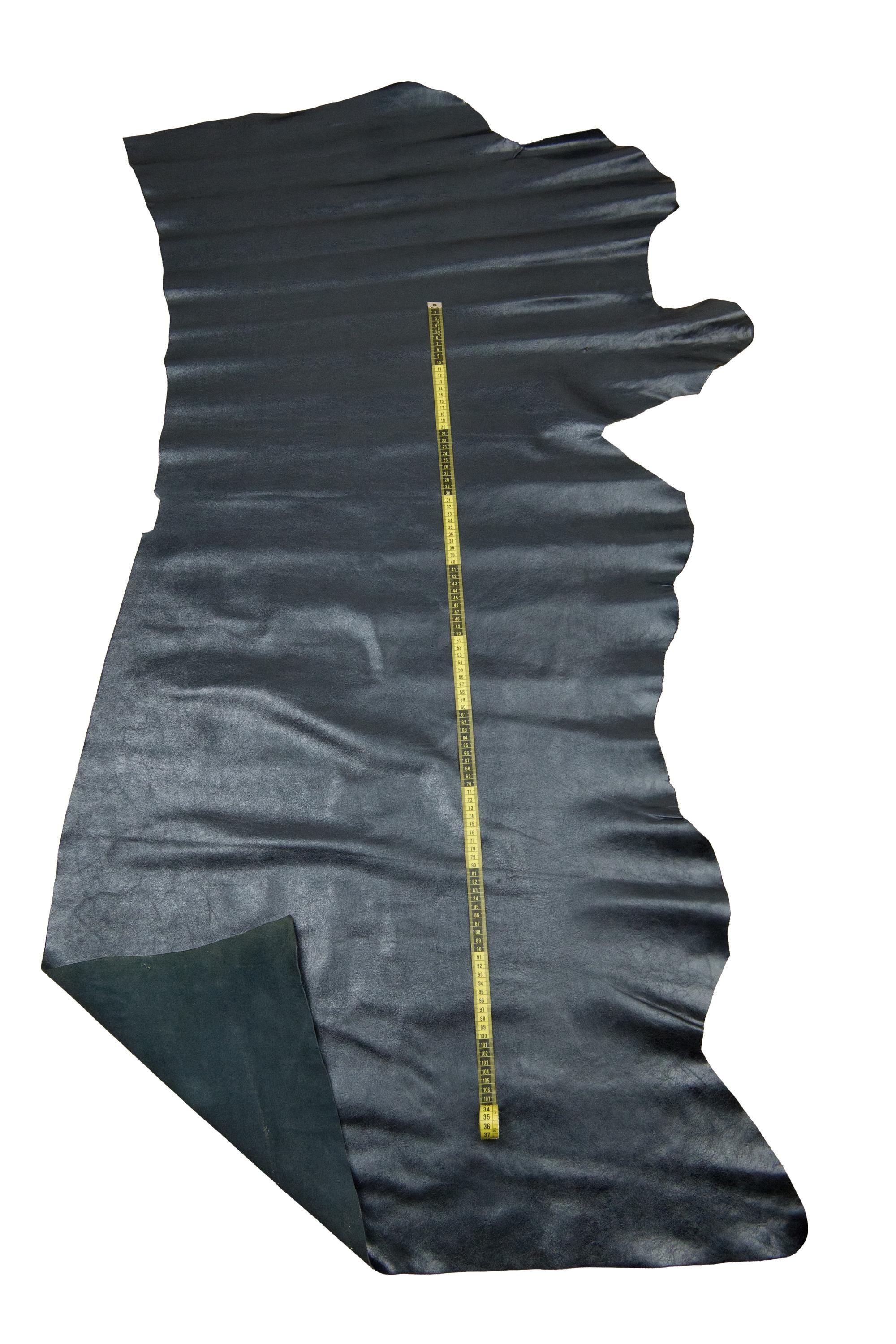 Wonderful anthracite blue leather hide, soft glossy cowhide, sporty calfskin for crafting.