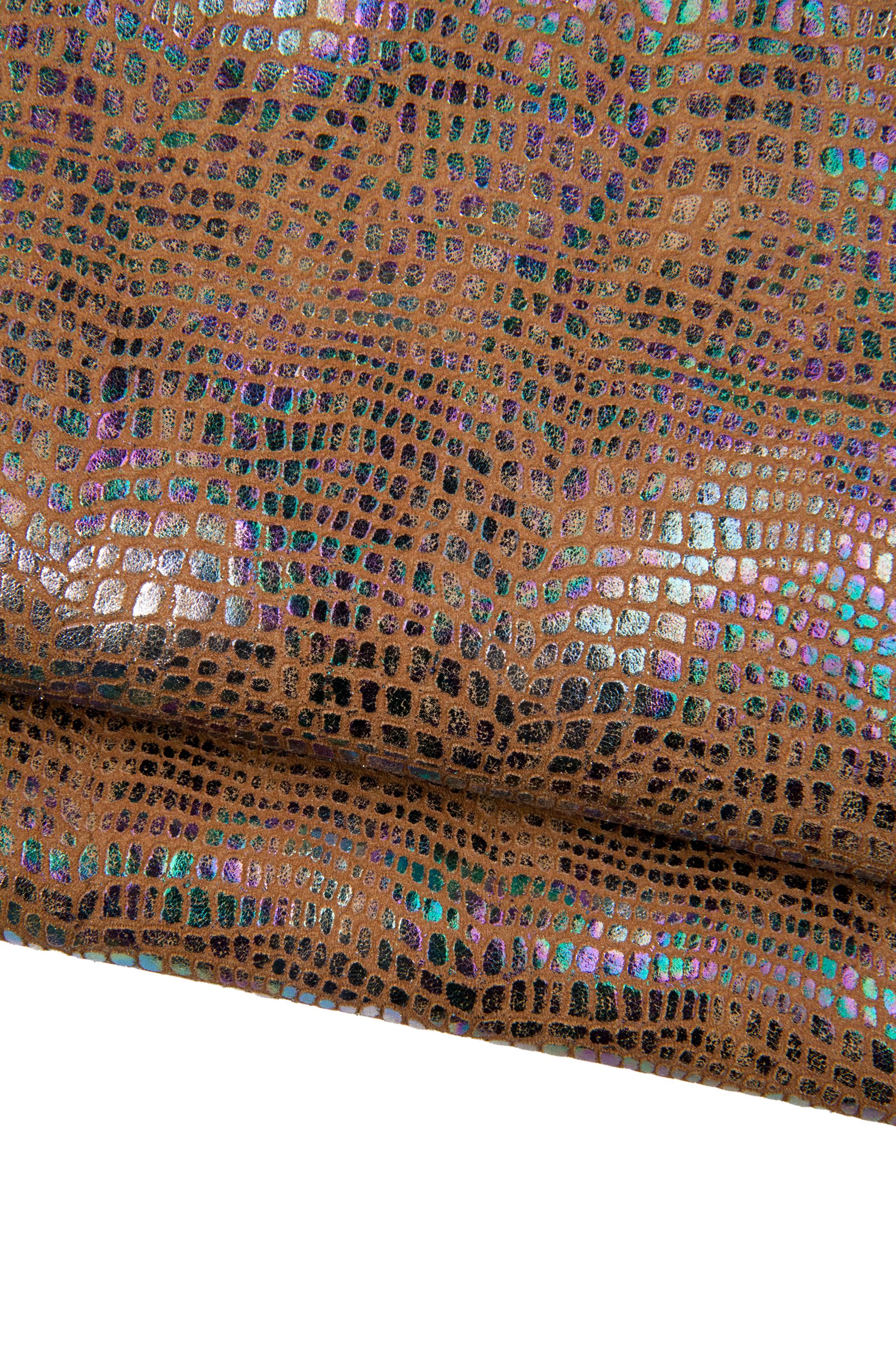 Beautiful brown iridescent metallic hide, crocodile embossed leather wrinkled vintage effect perfect for hobbyists
