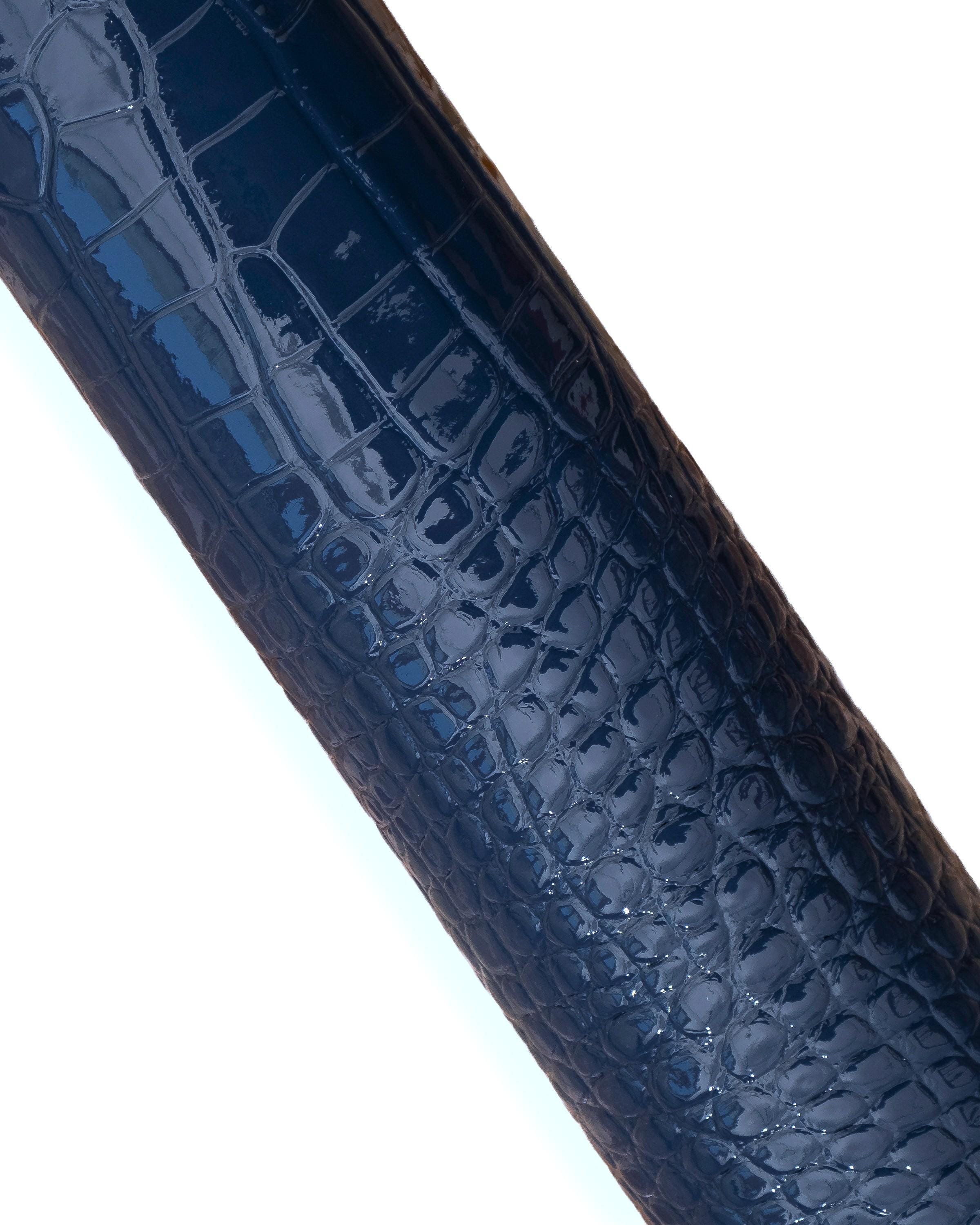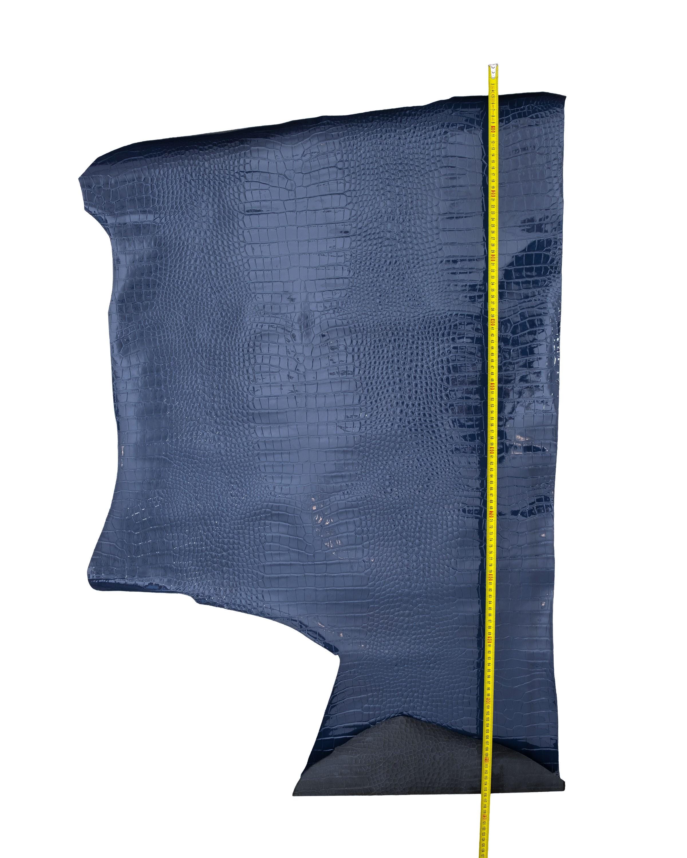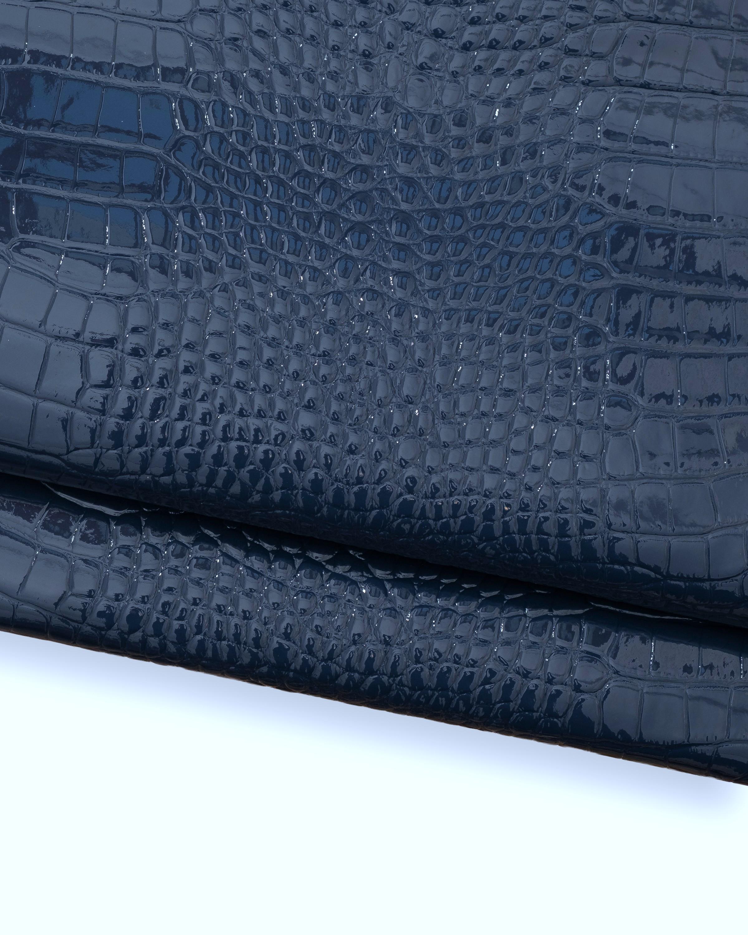 Beautiful blue crocodile embossed leather hide, alligator printed patent cowhide, glossy calfskin for crafters.