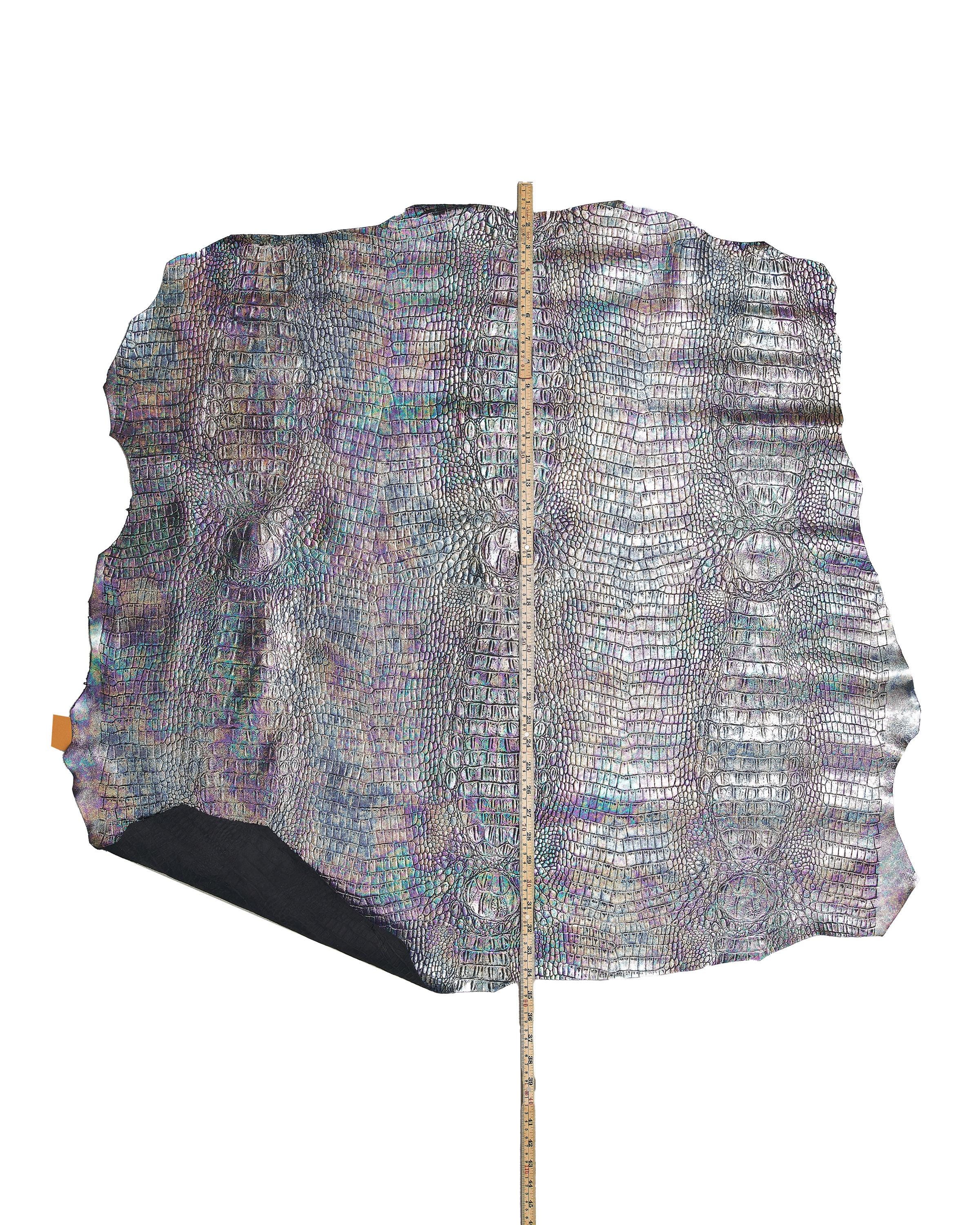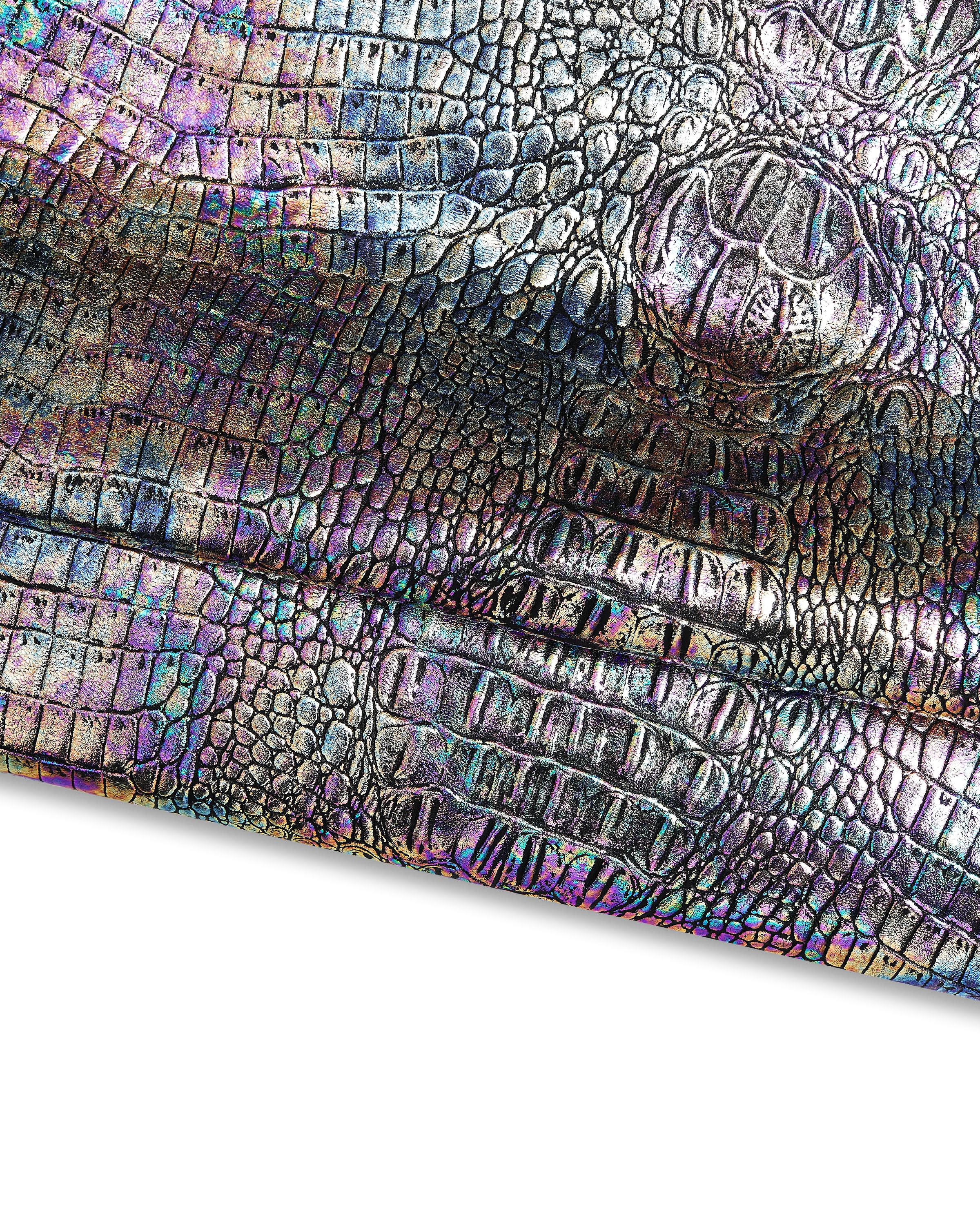 Stunning holographic calfskin with multicolor crocodile print, soft.