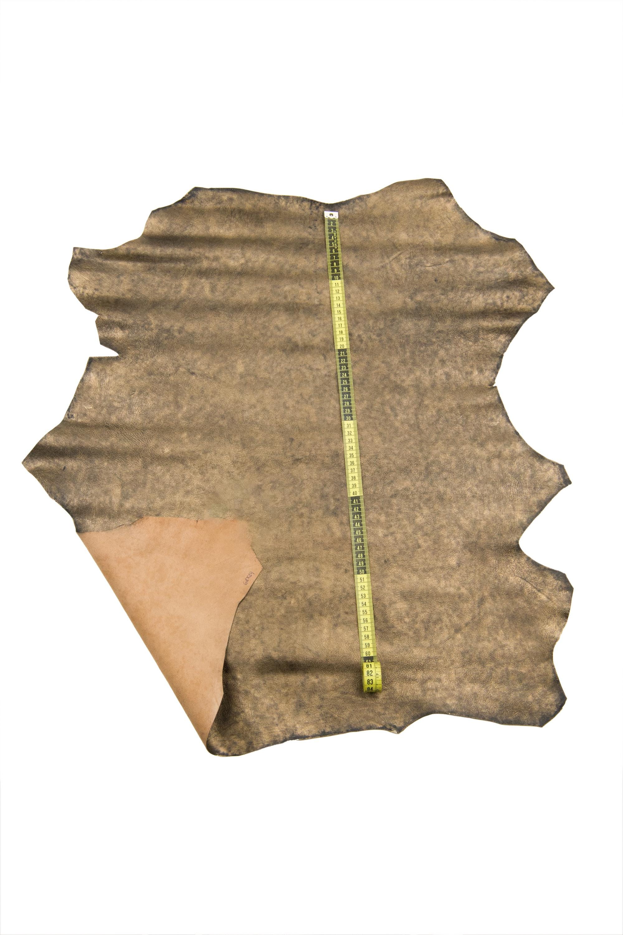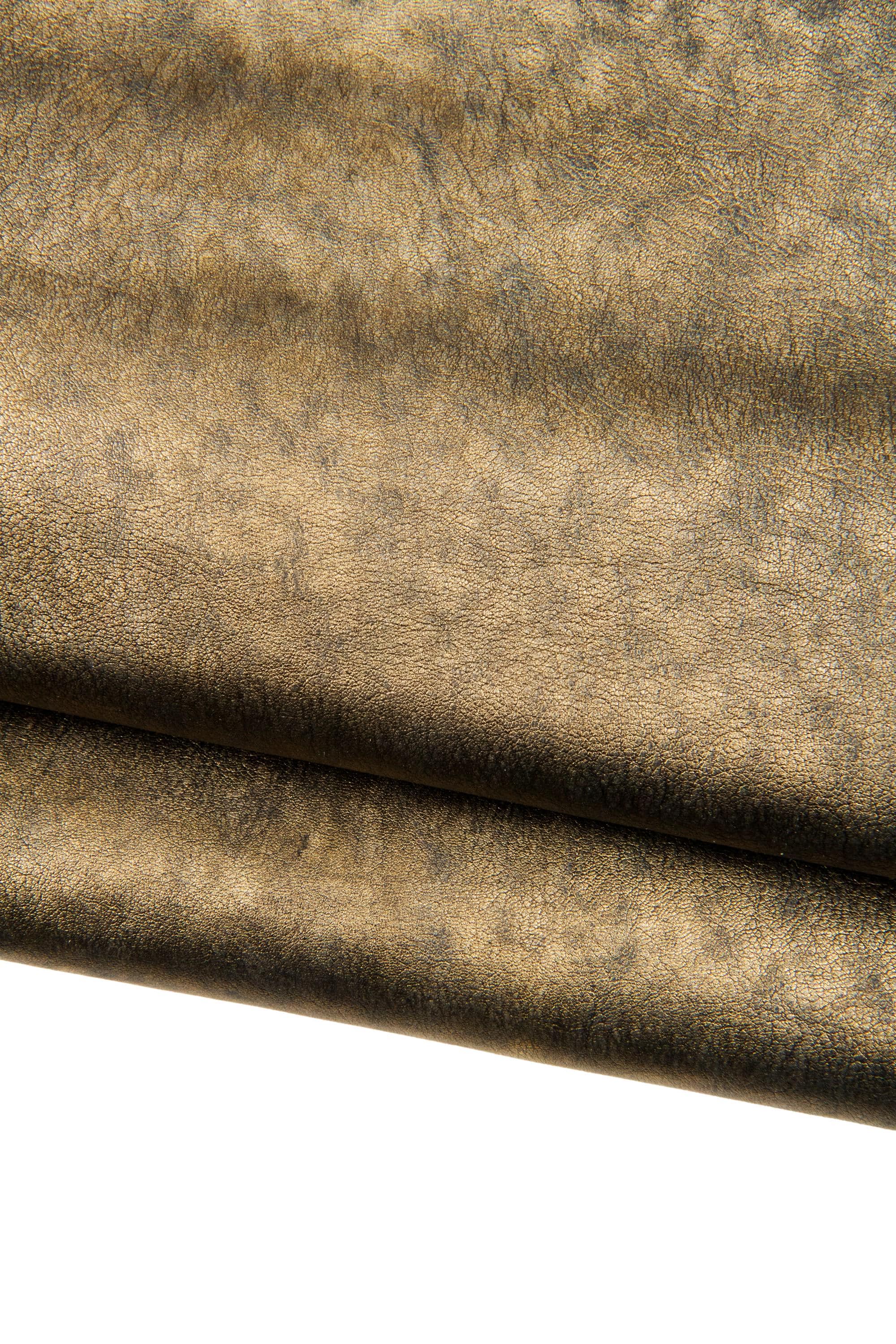 Luxurious bronze metallic leather skin, shaded soft goatskin, bright hide for diy projects.