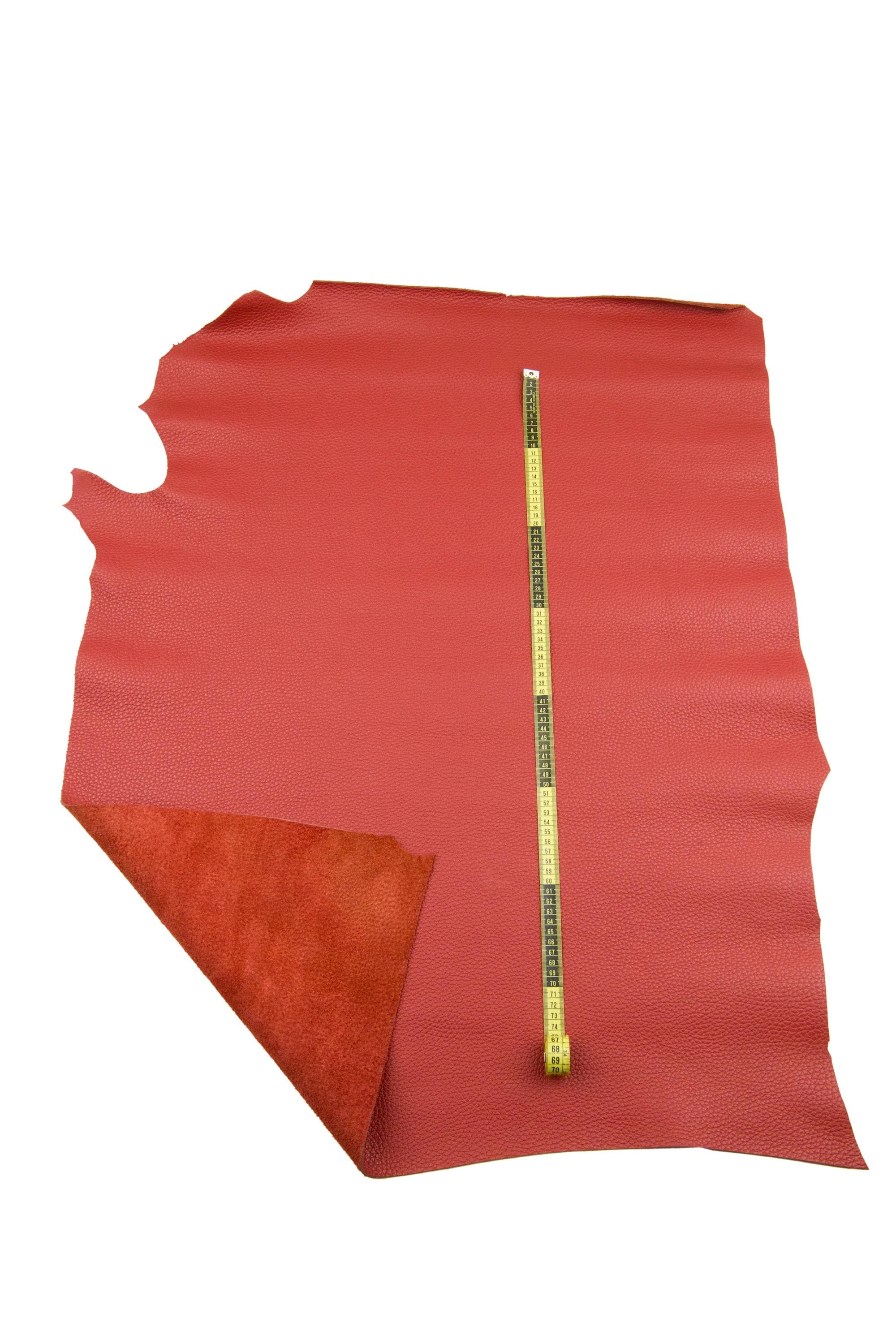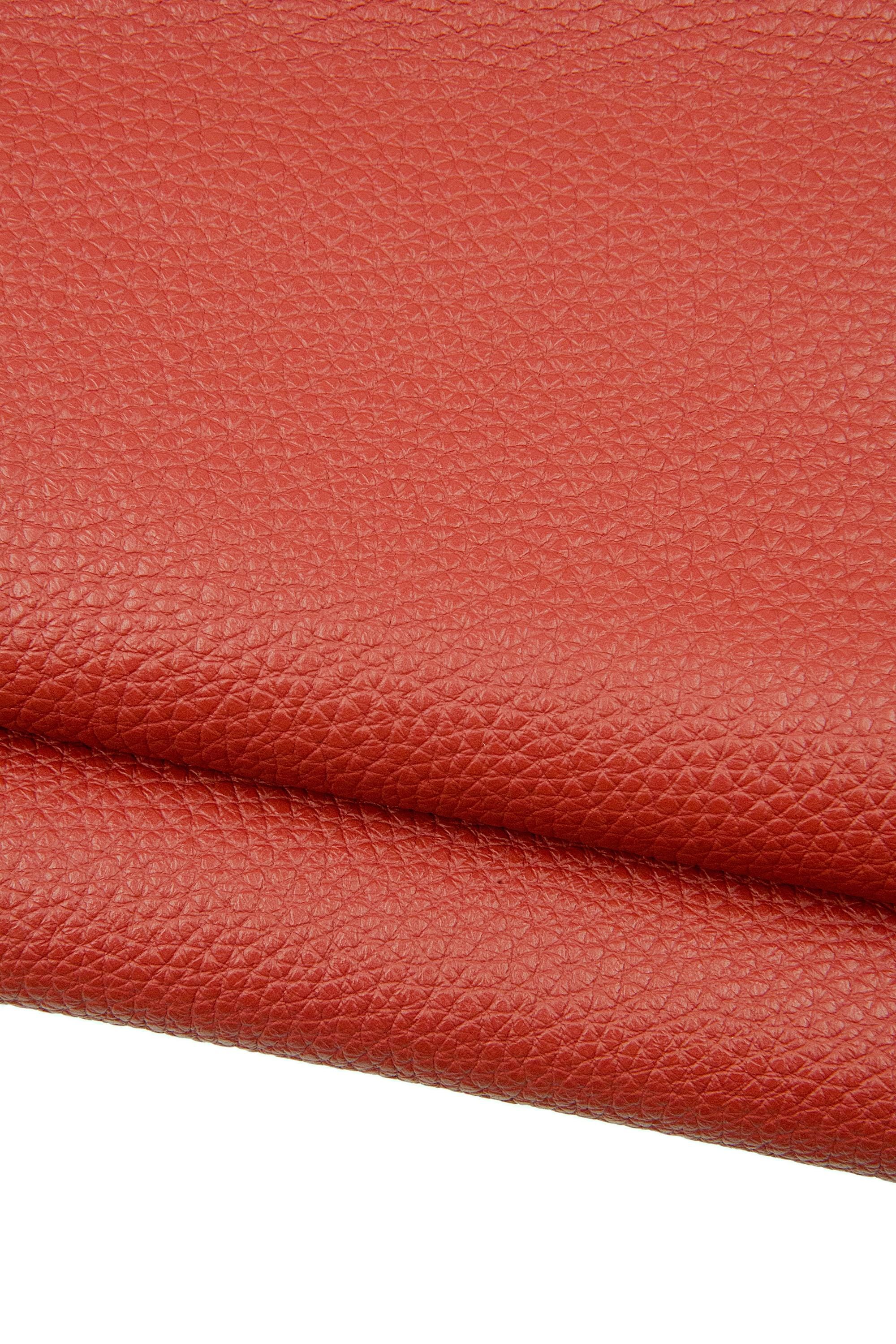 Fantastic brick red deer printed leather hide, pebble grain embossed calfskin, soft semi glossy genuine italian thick cowhide.
