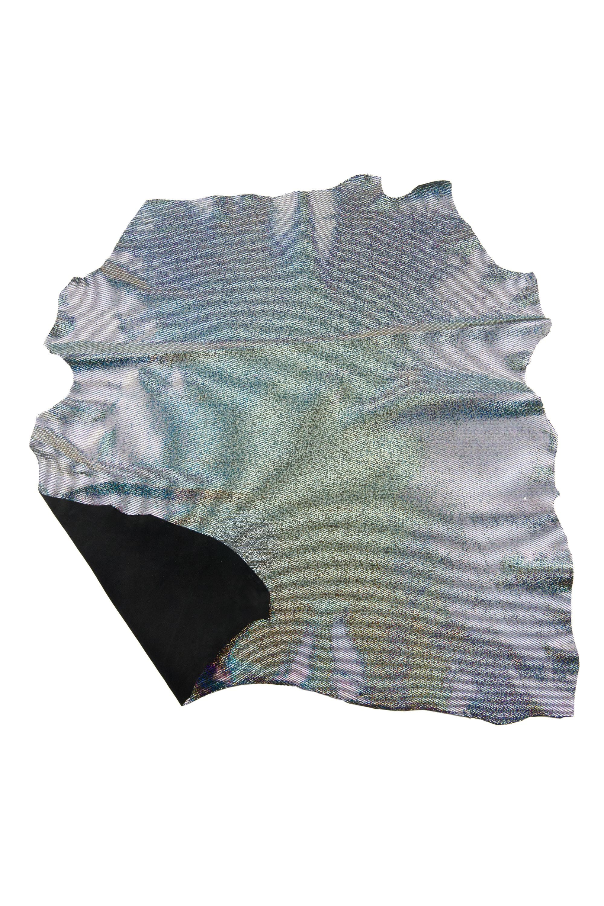 Wonderful Steelmetal iridescent goatskin, holographic metallic leather skin, bright sparkle soft hide for hobbyists.