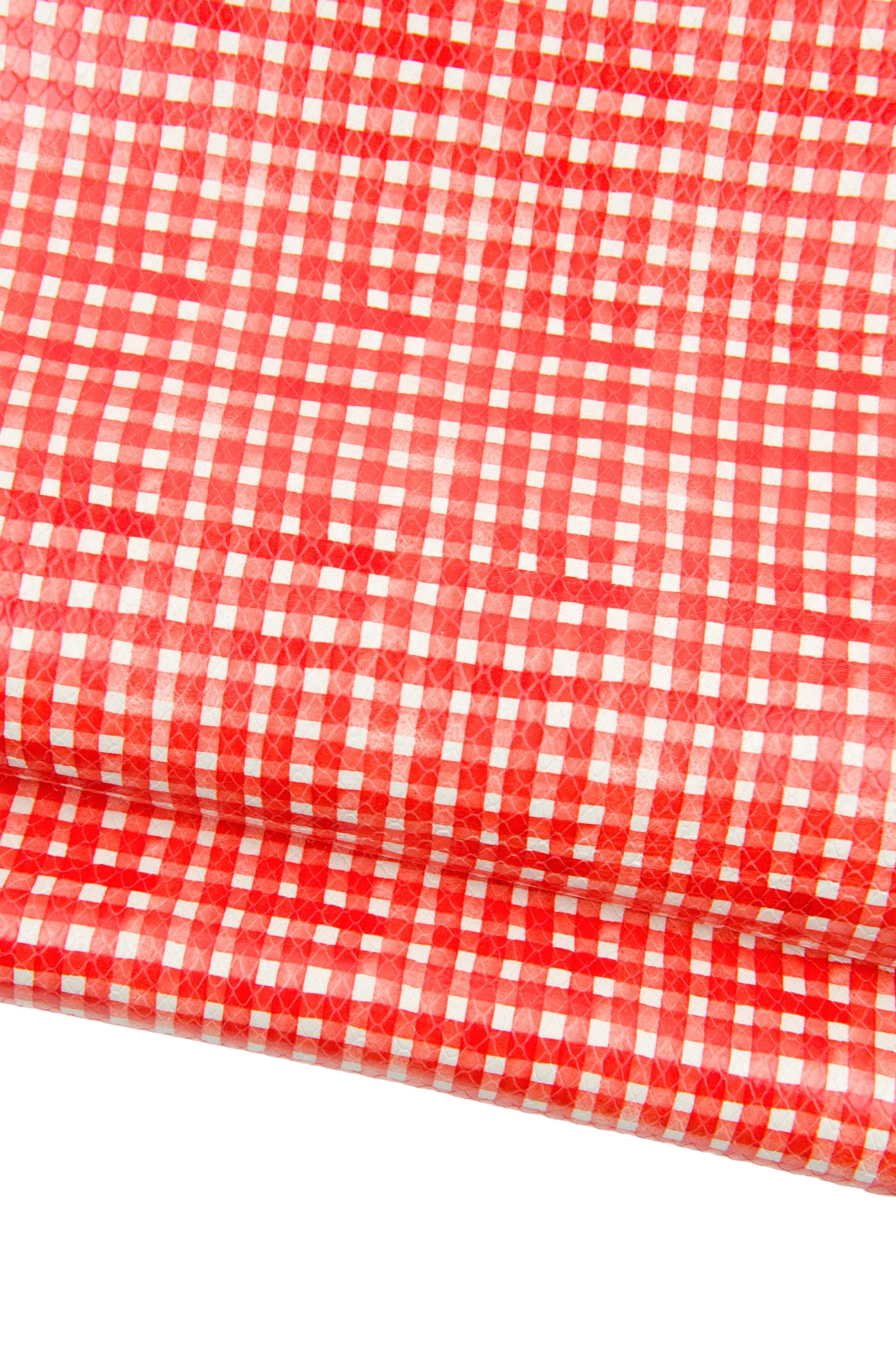 Superb white red checked printed cowhide, geometrical texture on glossy soft calfskin leather. Ideal for hobbyists.