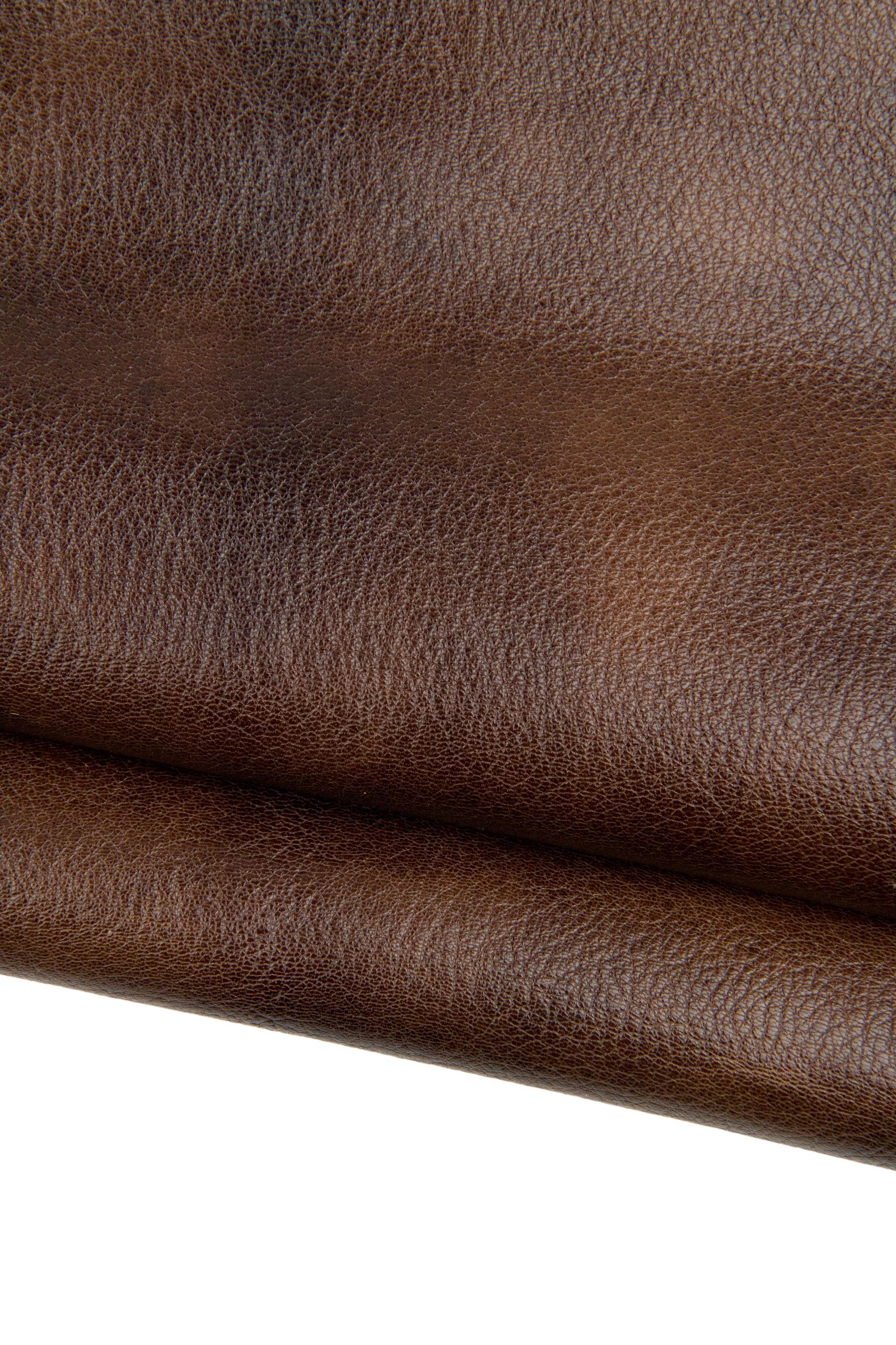 Fantastic brown glossy leather skin, soft grainy goatskin, sporty hide for hobbyists.