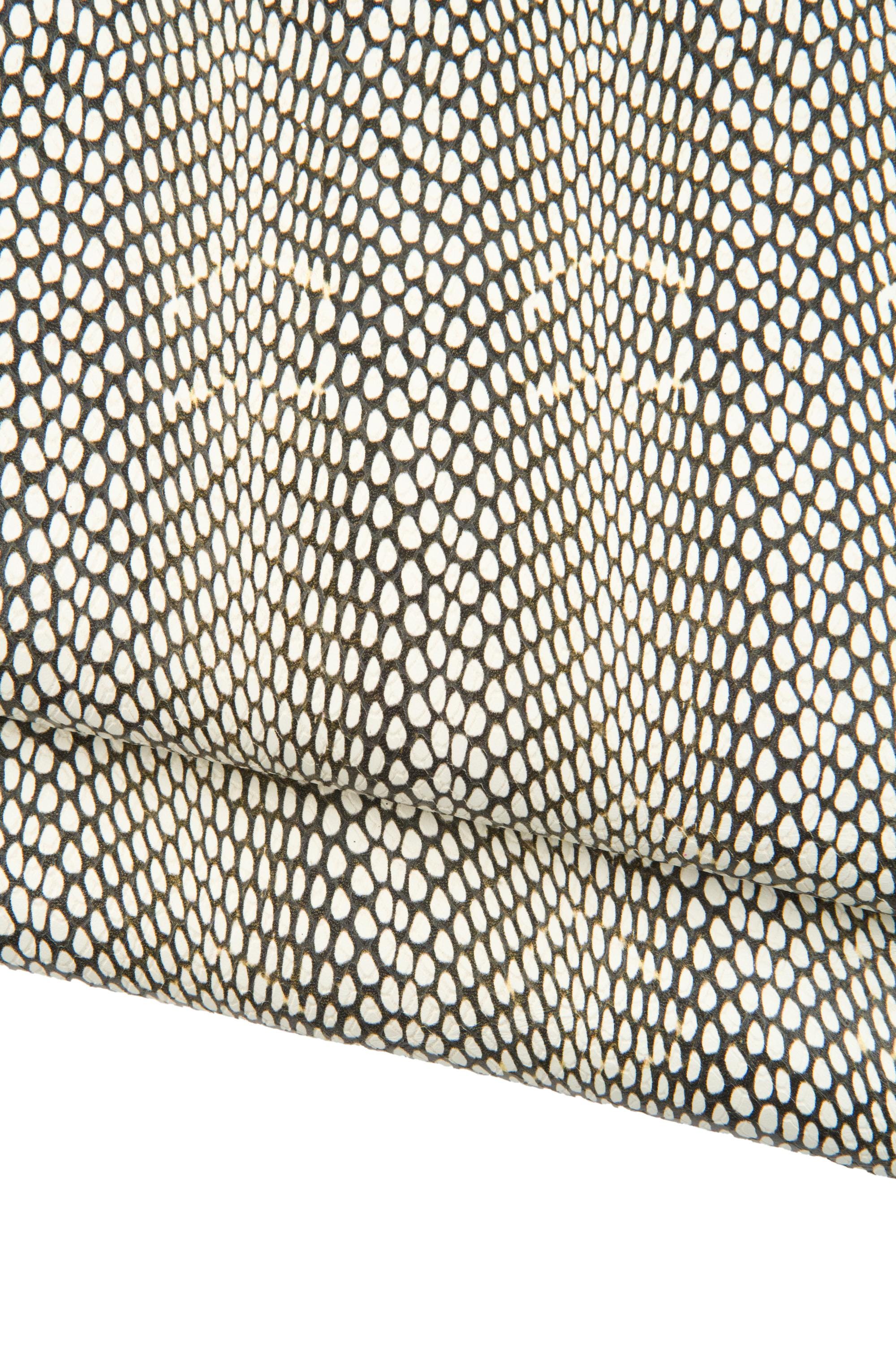 Fabulous white and black calfskin with snake print, semi glossy and soft for DIY projects.