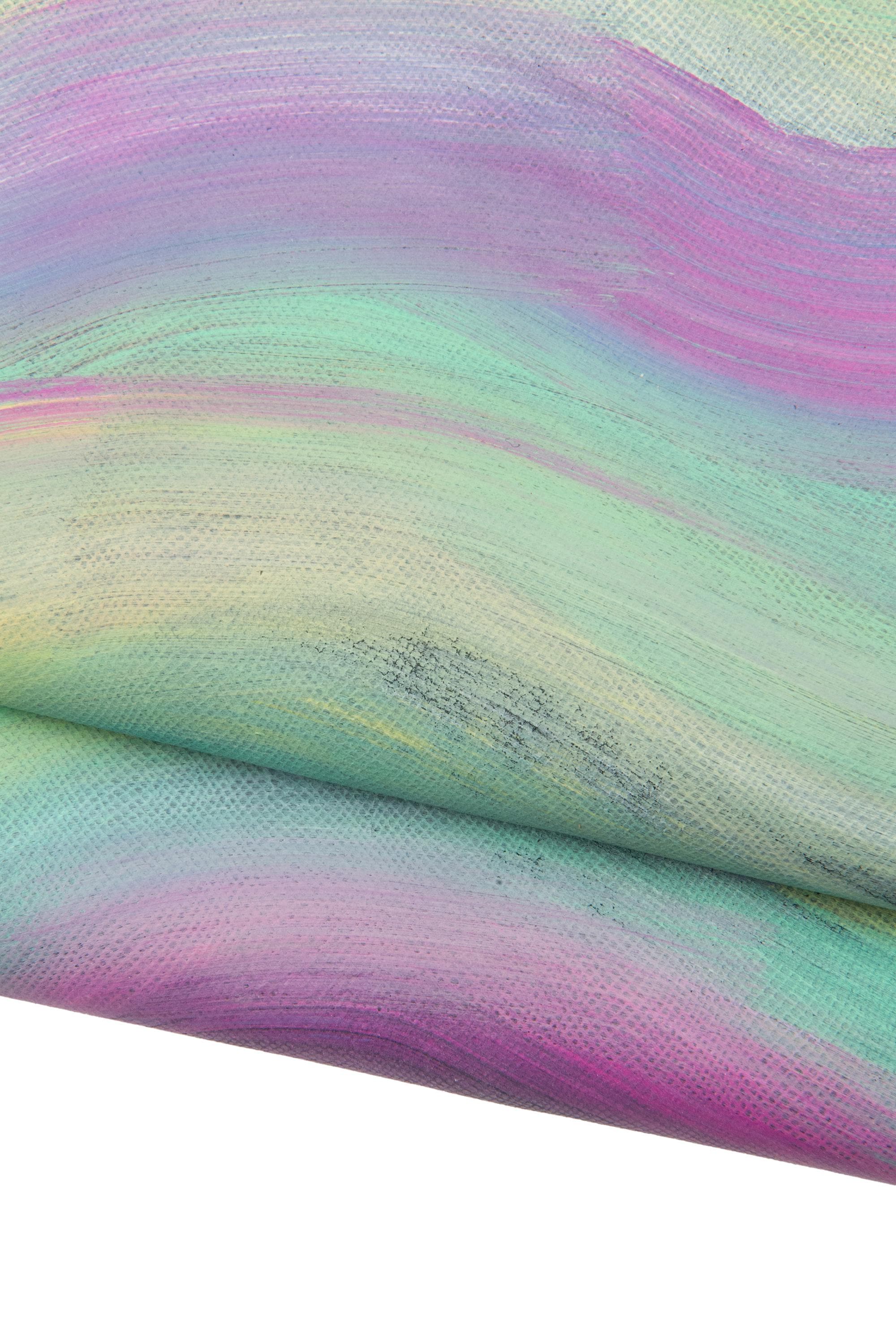 Special multicolor hand painted leather skin, colorful wave - print on sheepskin, soft matt lambskin for hobbyists.