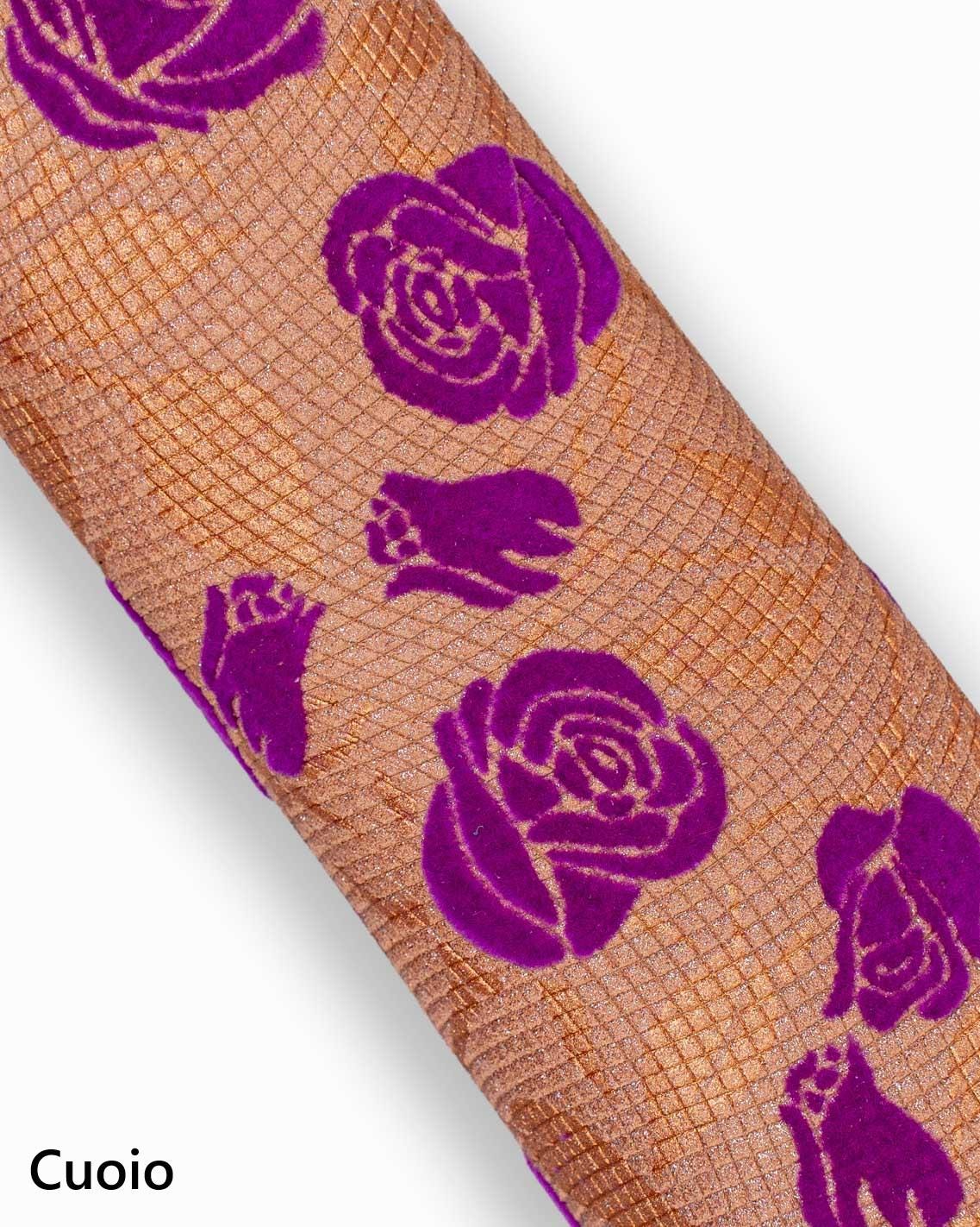 Gorgeous flower and leaf print leather on suede split calfskin, flock flowers and leaves details in copper, a unique soft leather for hobbyists.