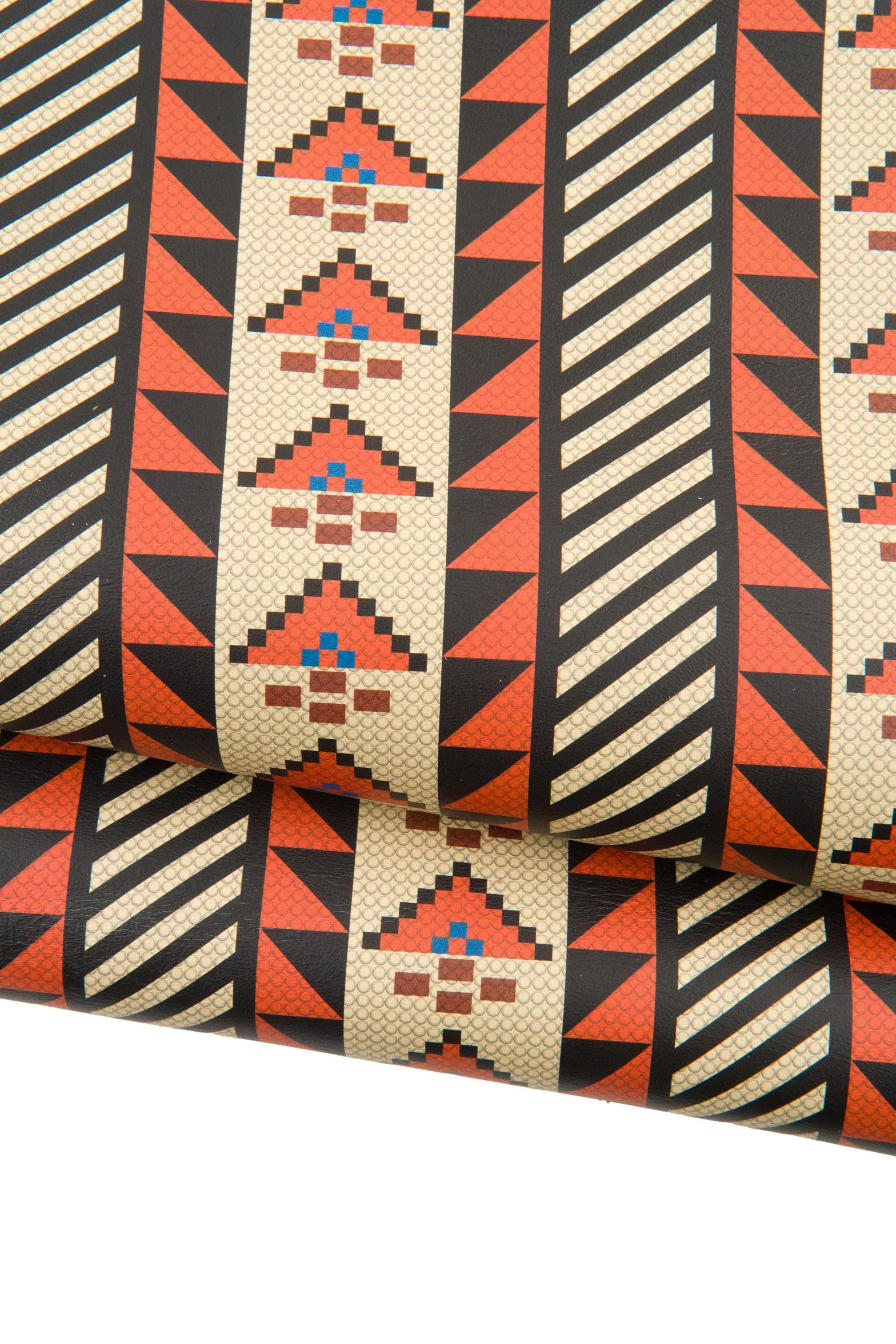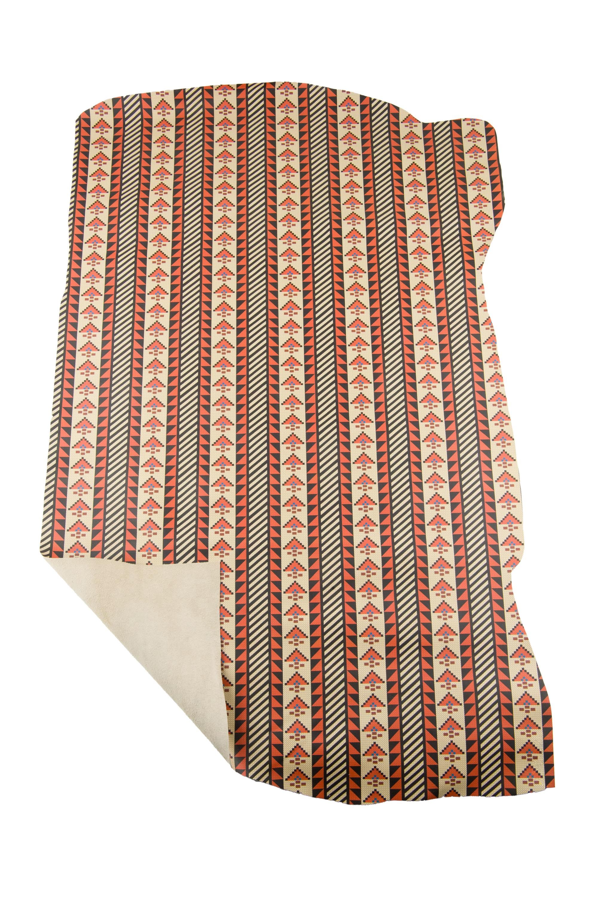 Unusual tribal print on leather hide, multicolor geometrical textured cowhide, soft matt calfskin for crafters.