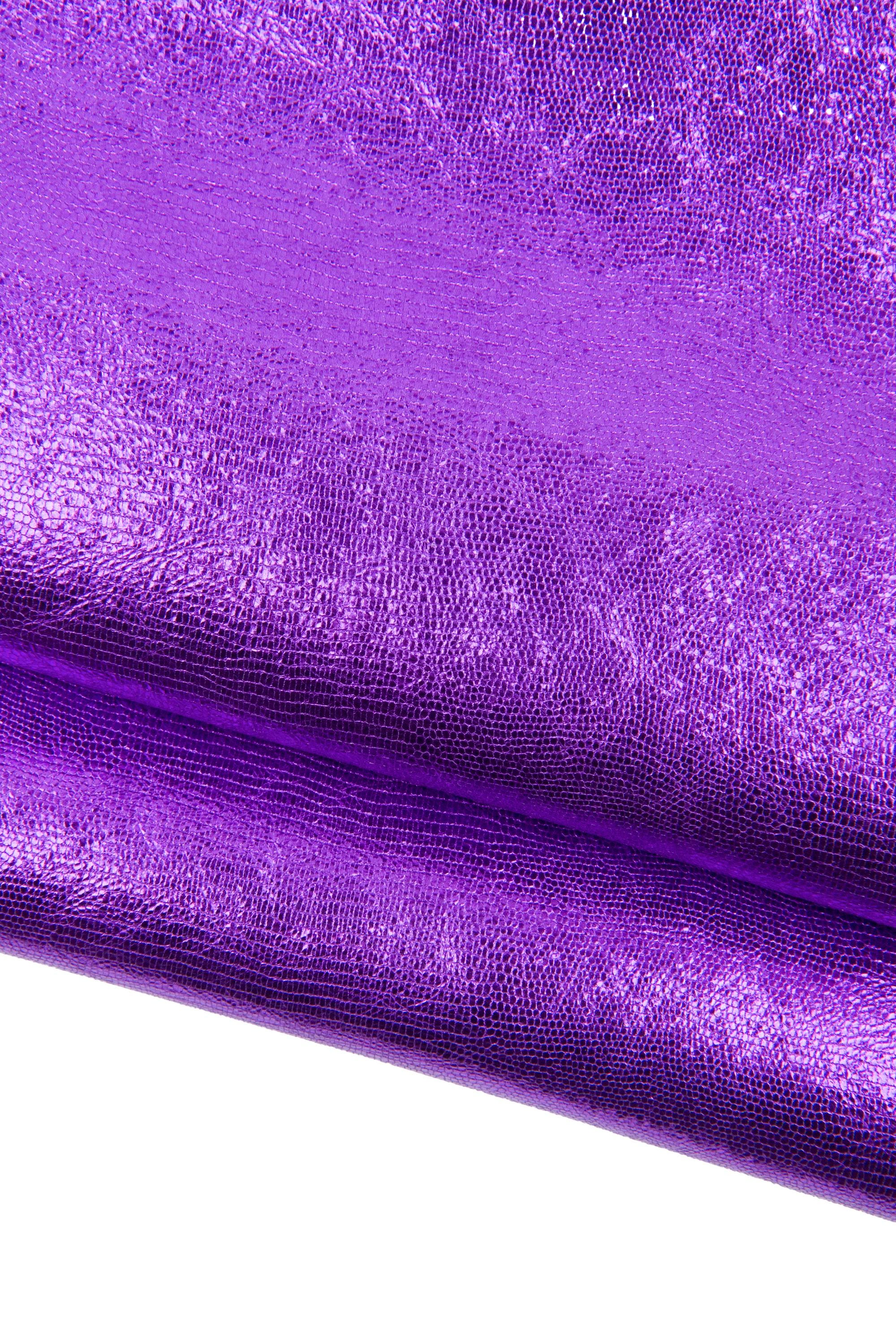 Wonderful purple lizard printed calfskin, animal textured METALLIC leather hide, bright elegant italian cowhide for hobbyists.