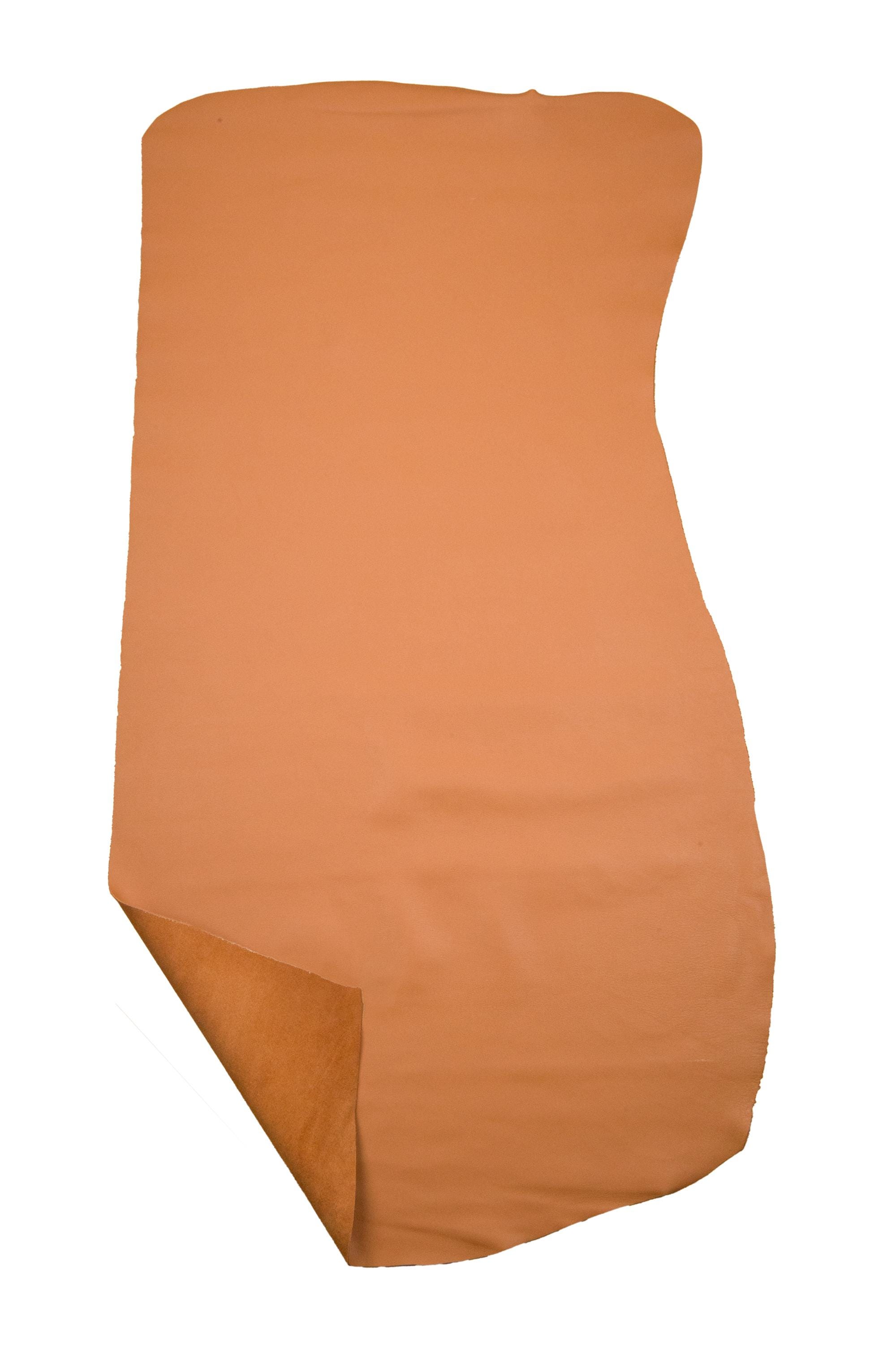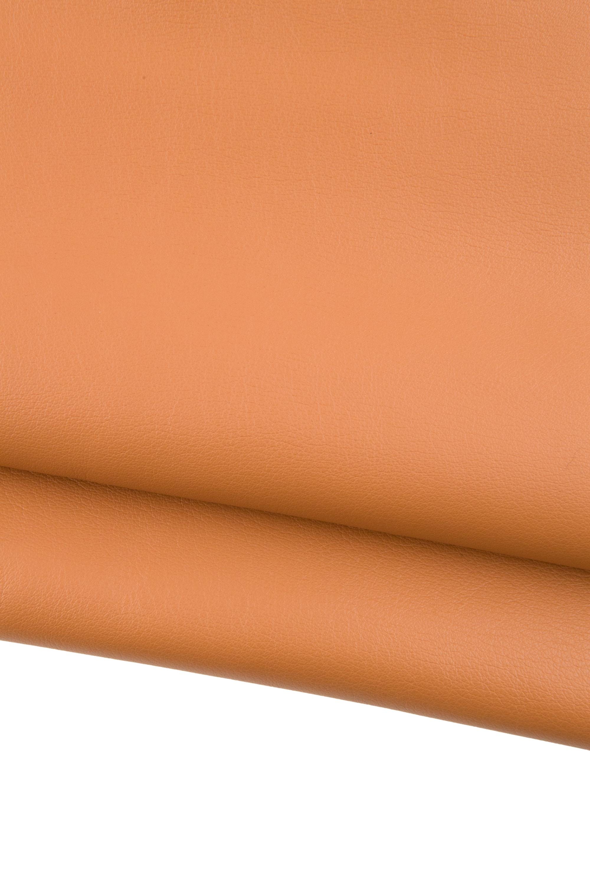 Incredible Tan smooth cowhide, brown soft semi glossy leather hide, genuine calfskin for diy projects.