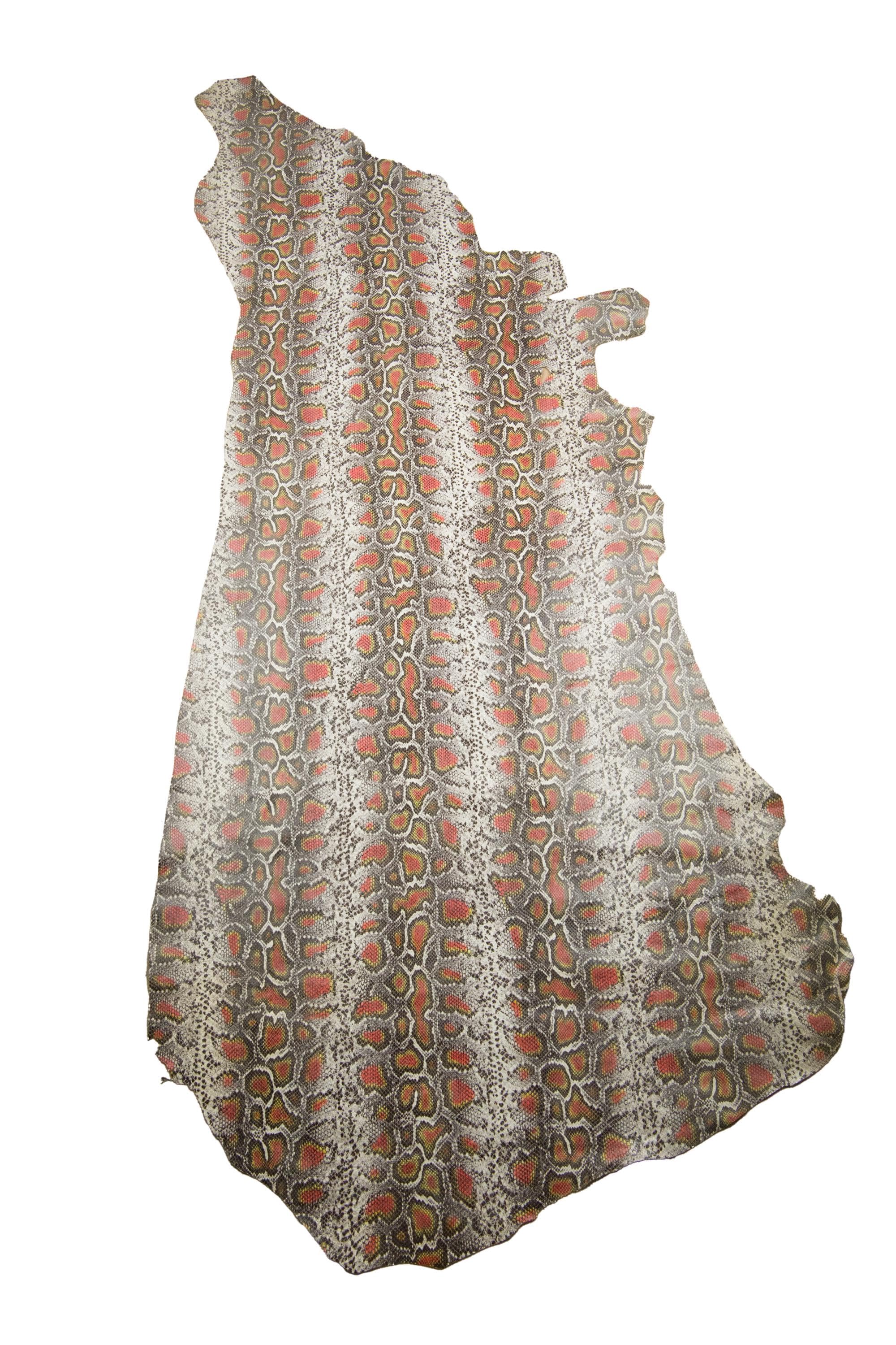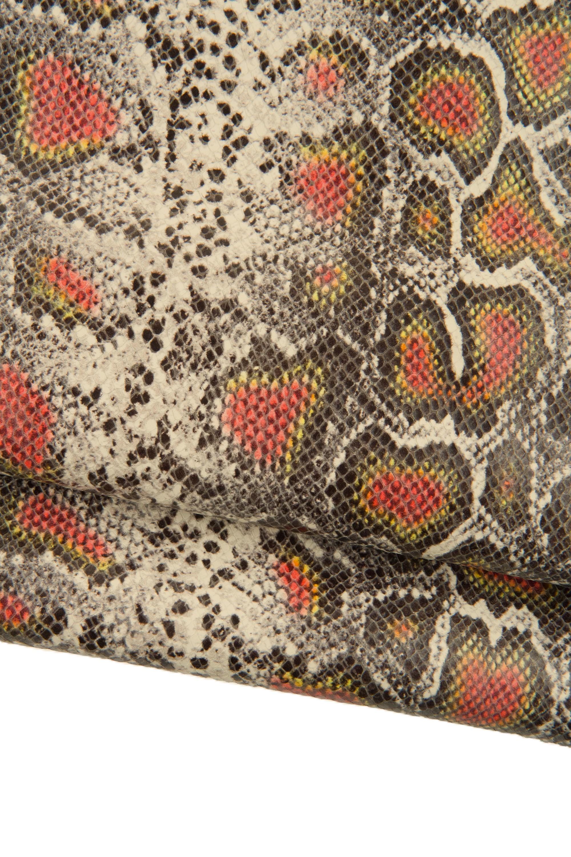 Beautiful python printed leather hide, reptile textured soft calfskin, semi glossy snake pattern on cowhide for crafters.