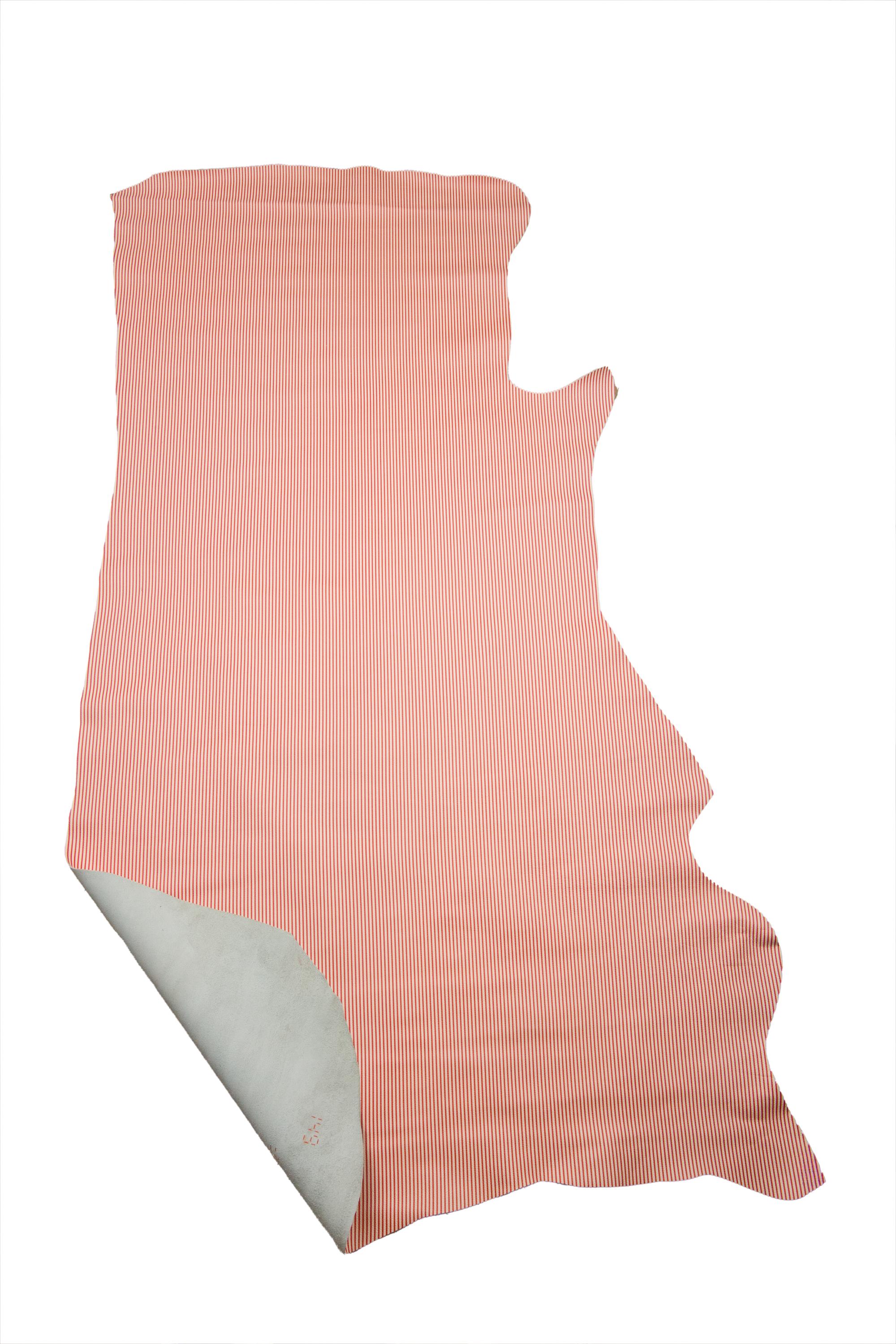 Fabulous white red striped leather hide, geometrical printed gariny cowhide, matt soft calfskin for diy projects.
