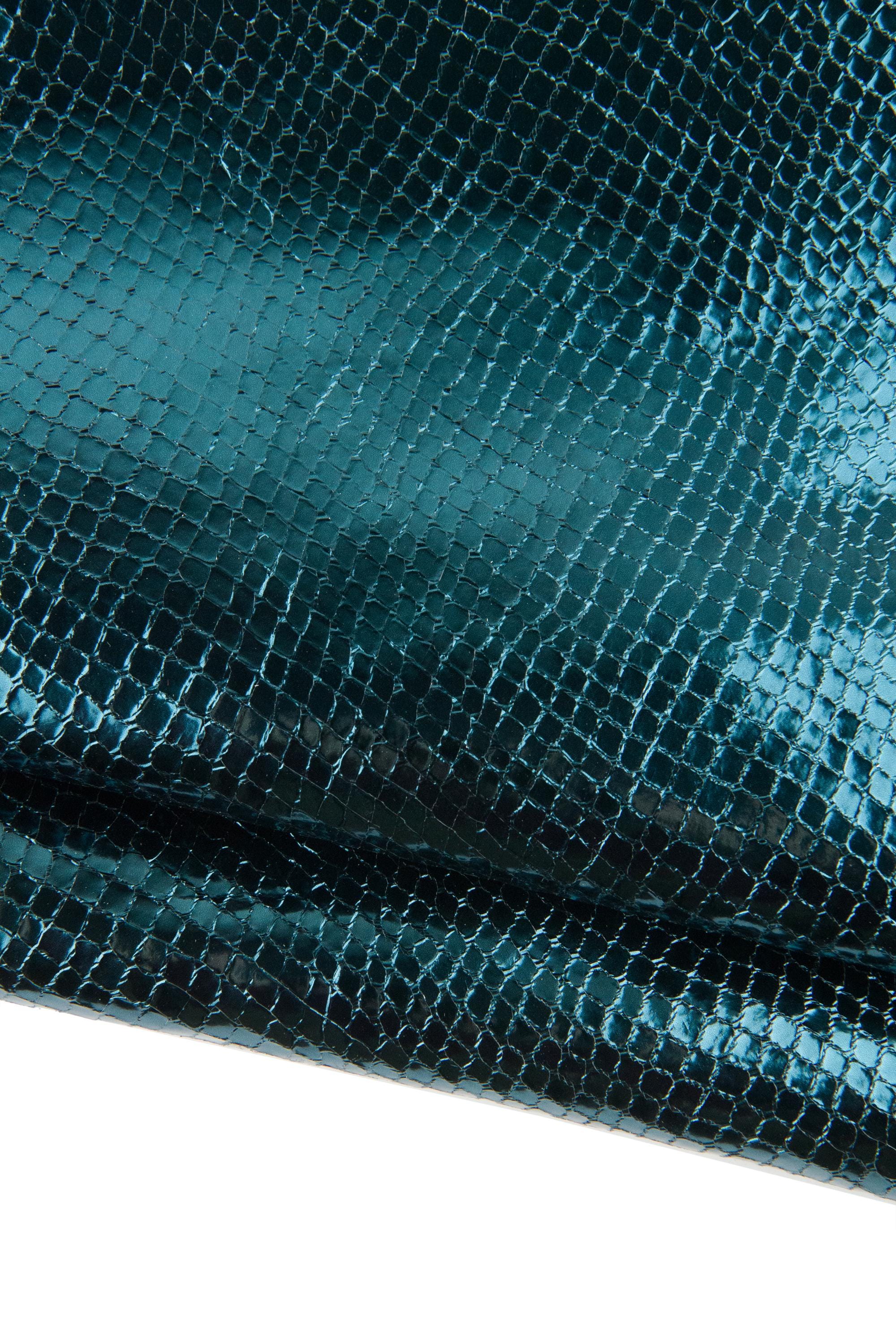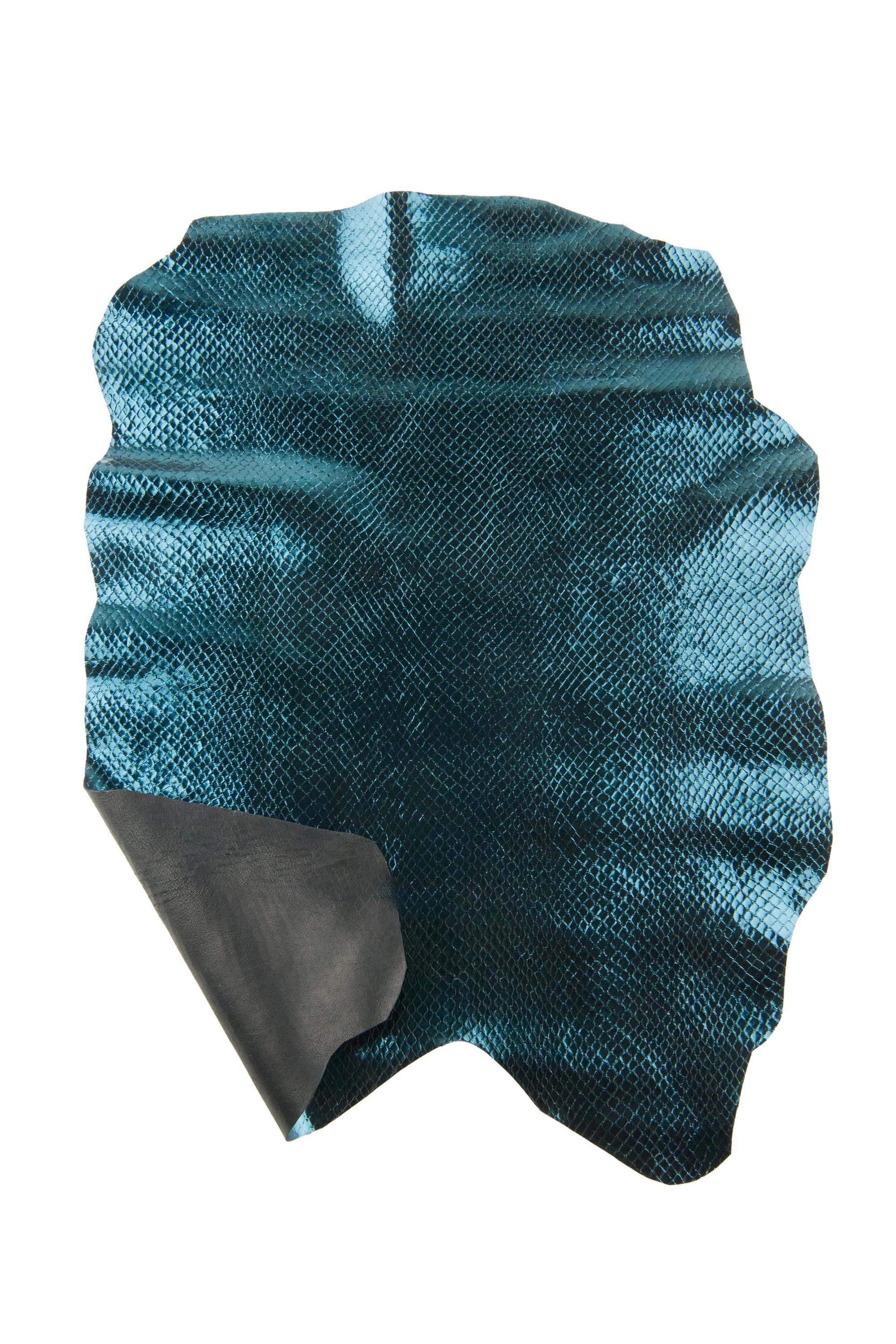 Faboulous petroleum green metallic leather skin, reptile printed goatskin, soft bright python snakeskin for hobbyists.
