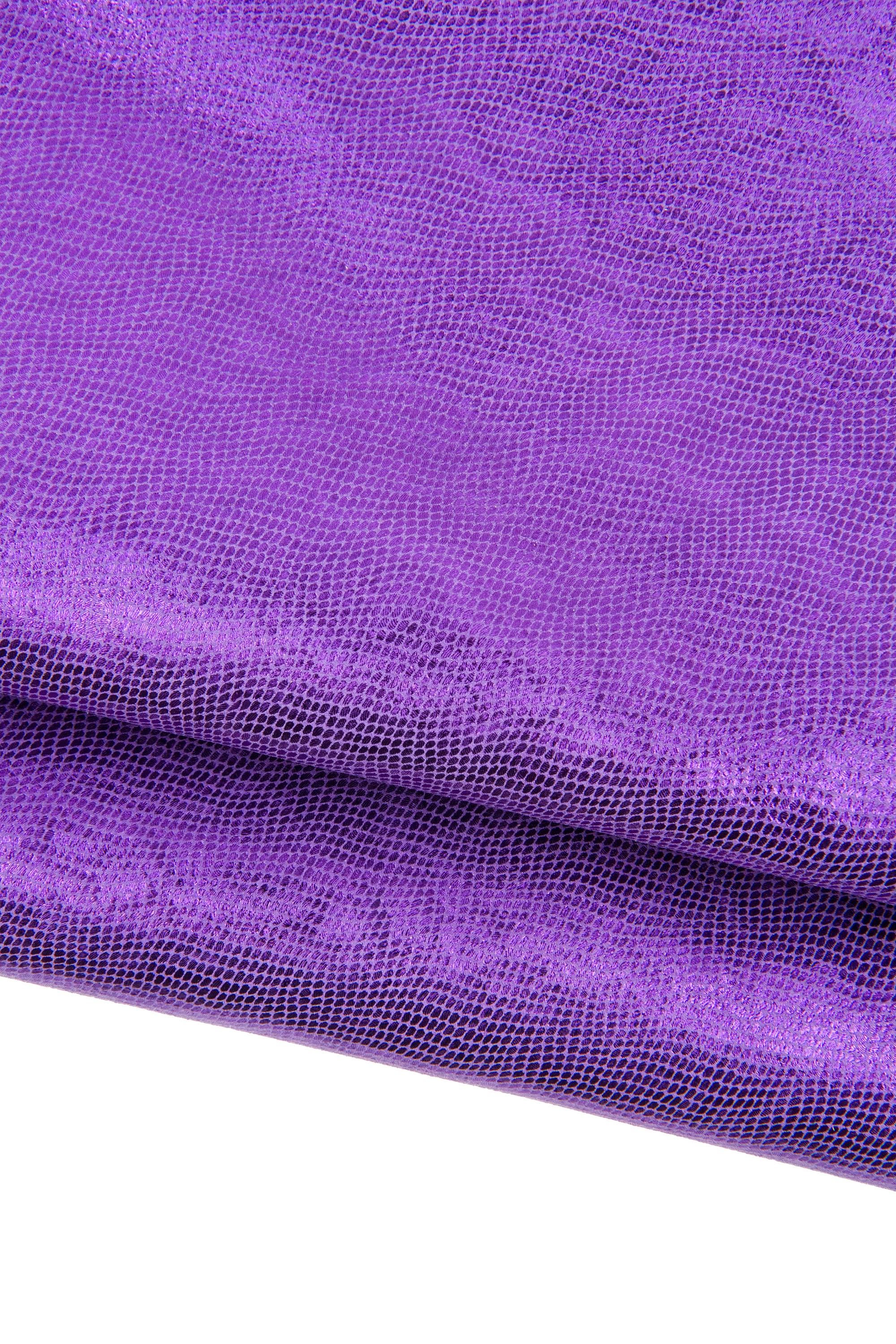 Wonderful purple reptile leather skin, metallic snake printed cowhide, glossy soft hide for DIY projects.