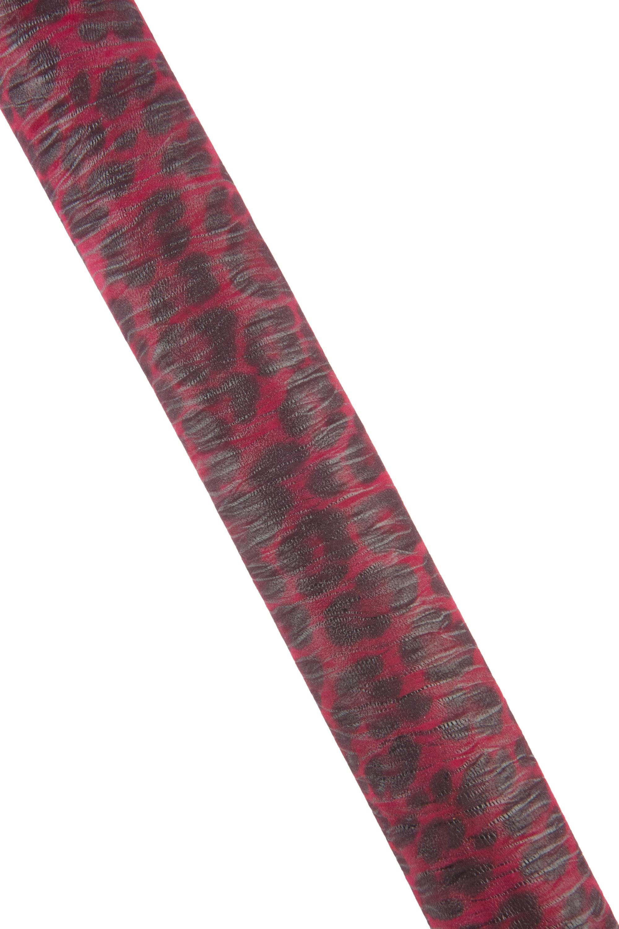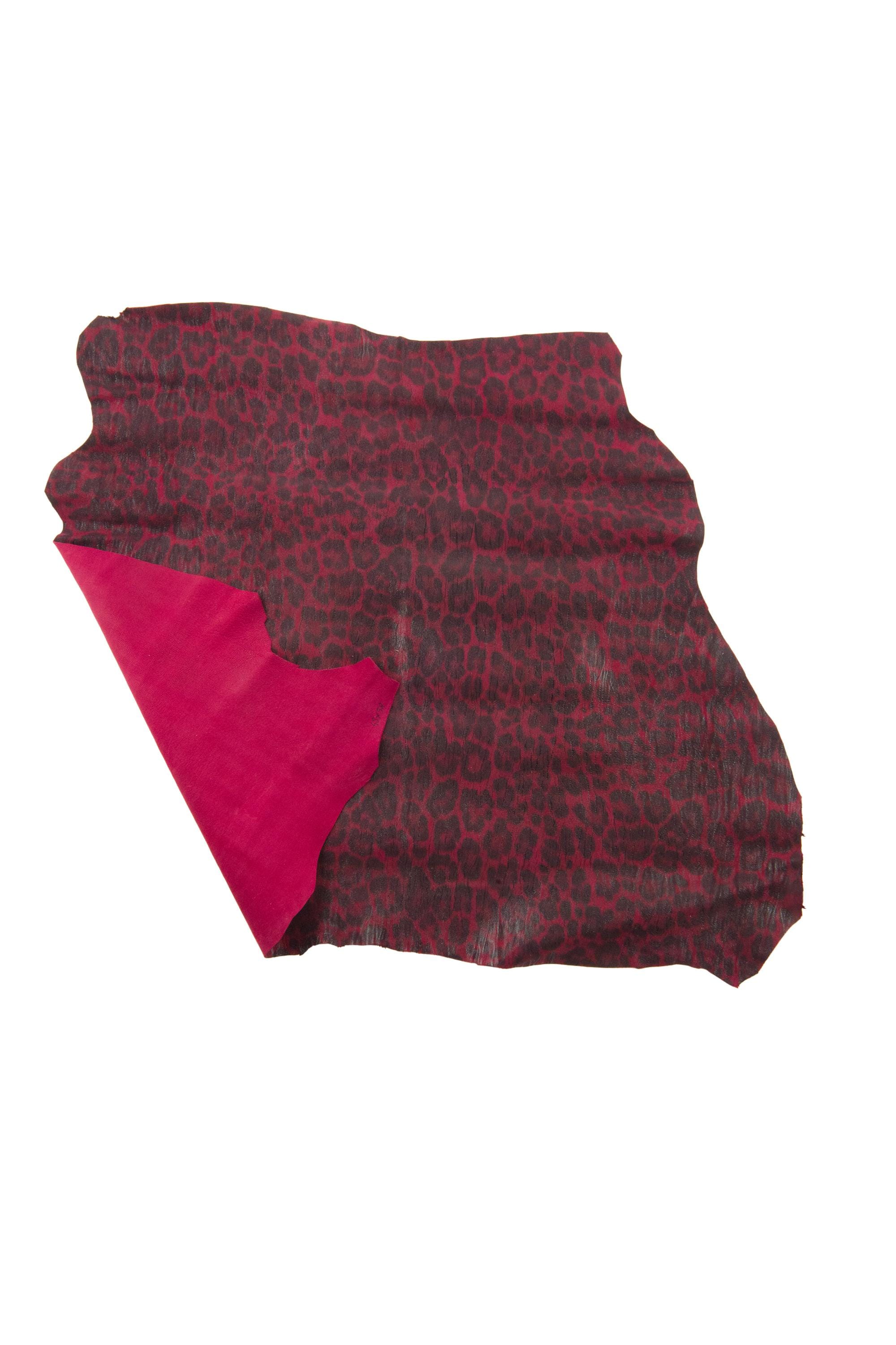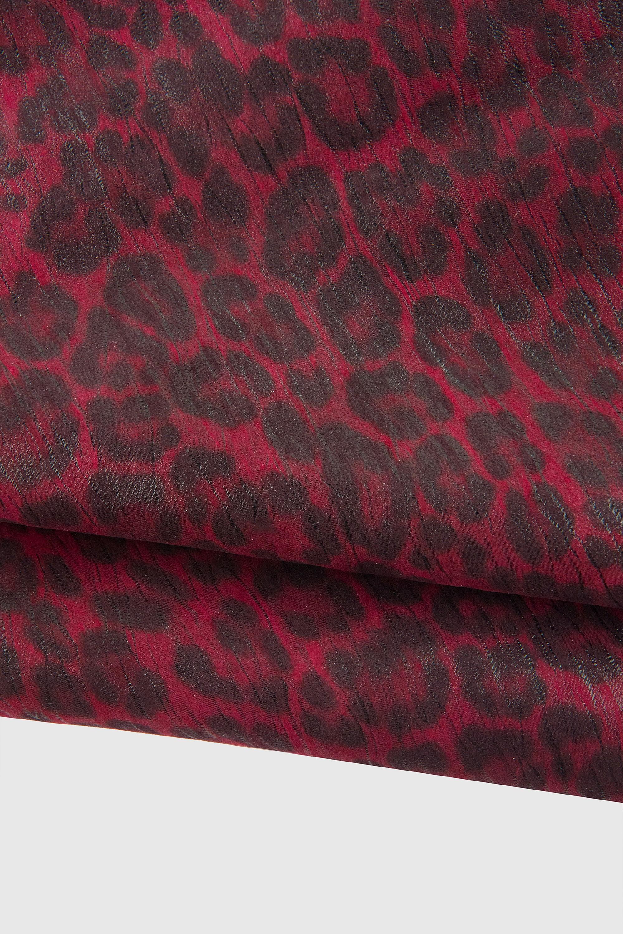 Elegant leopard printed leather skin, cheetah animal print on red metallic goatskin, soft bright suede hide for hobbyists.