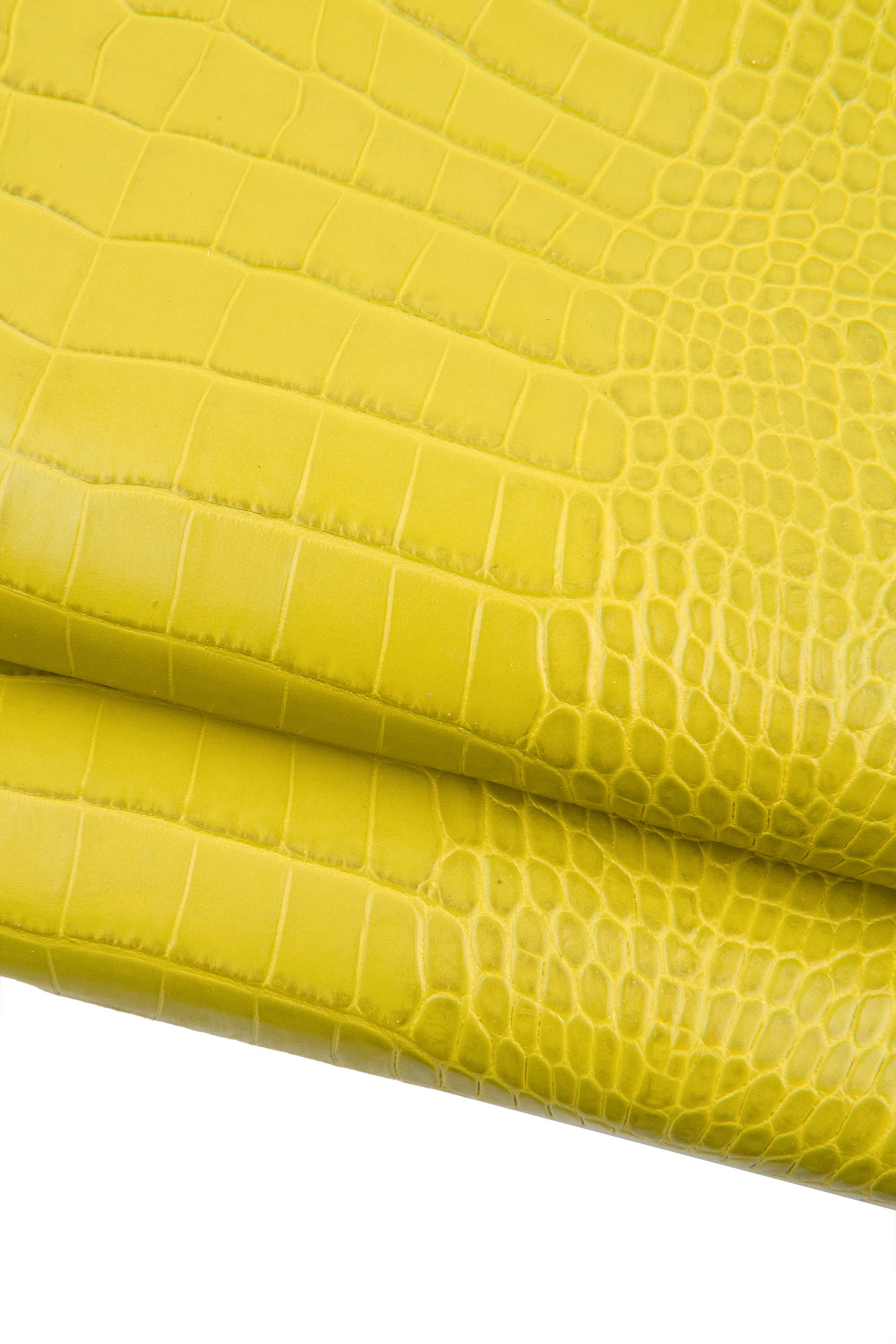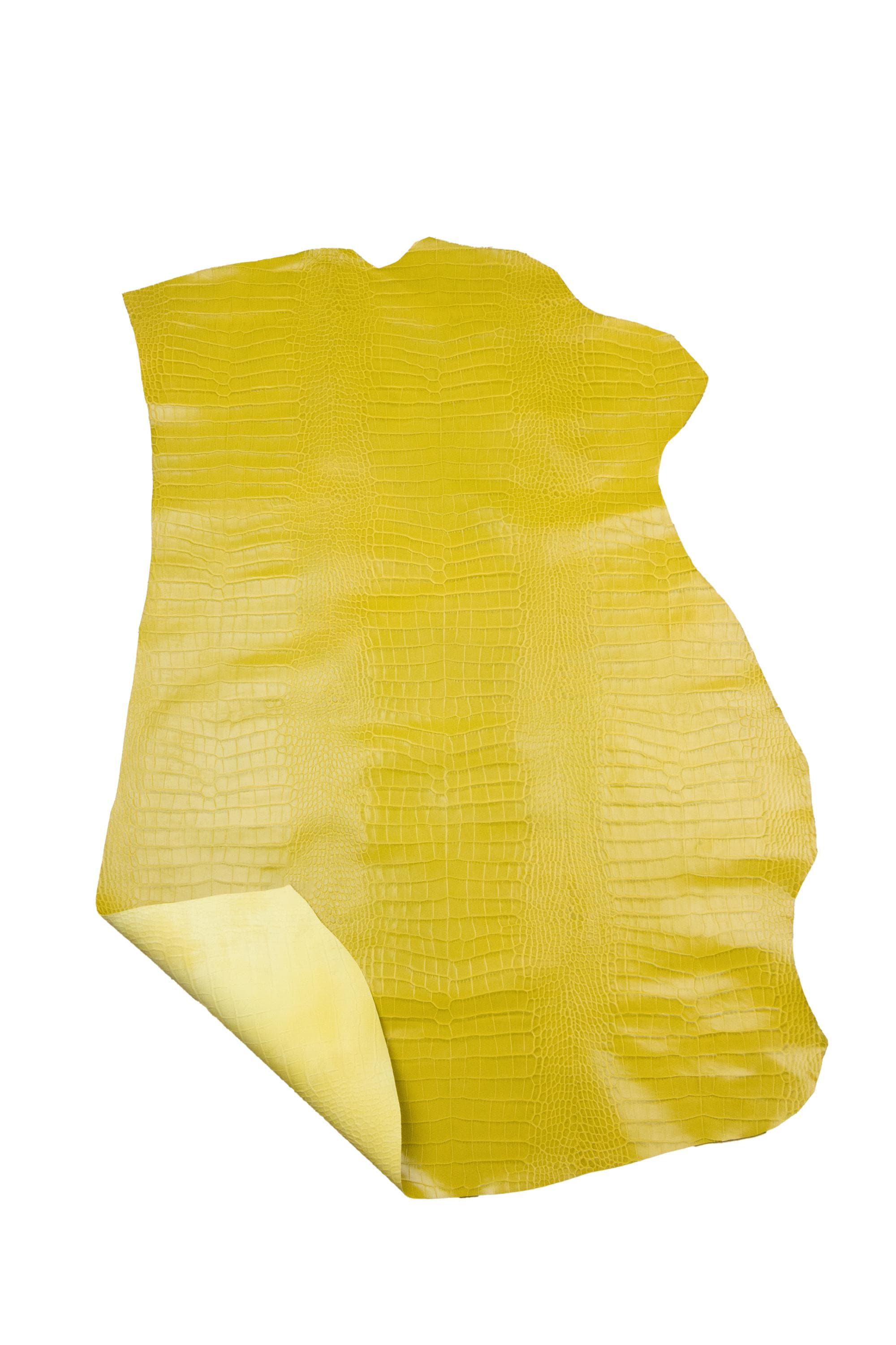 Fabulous Yellow crocodile embossed leather hide, alligator printed cowhide, glossy cowhide for crafters.