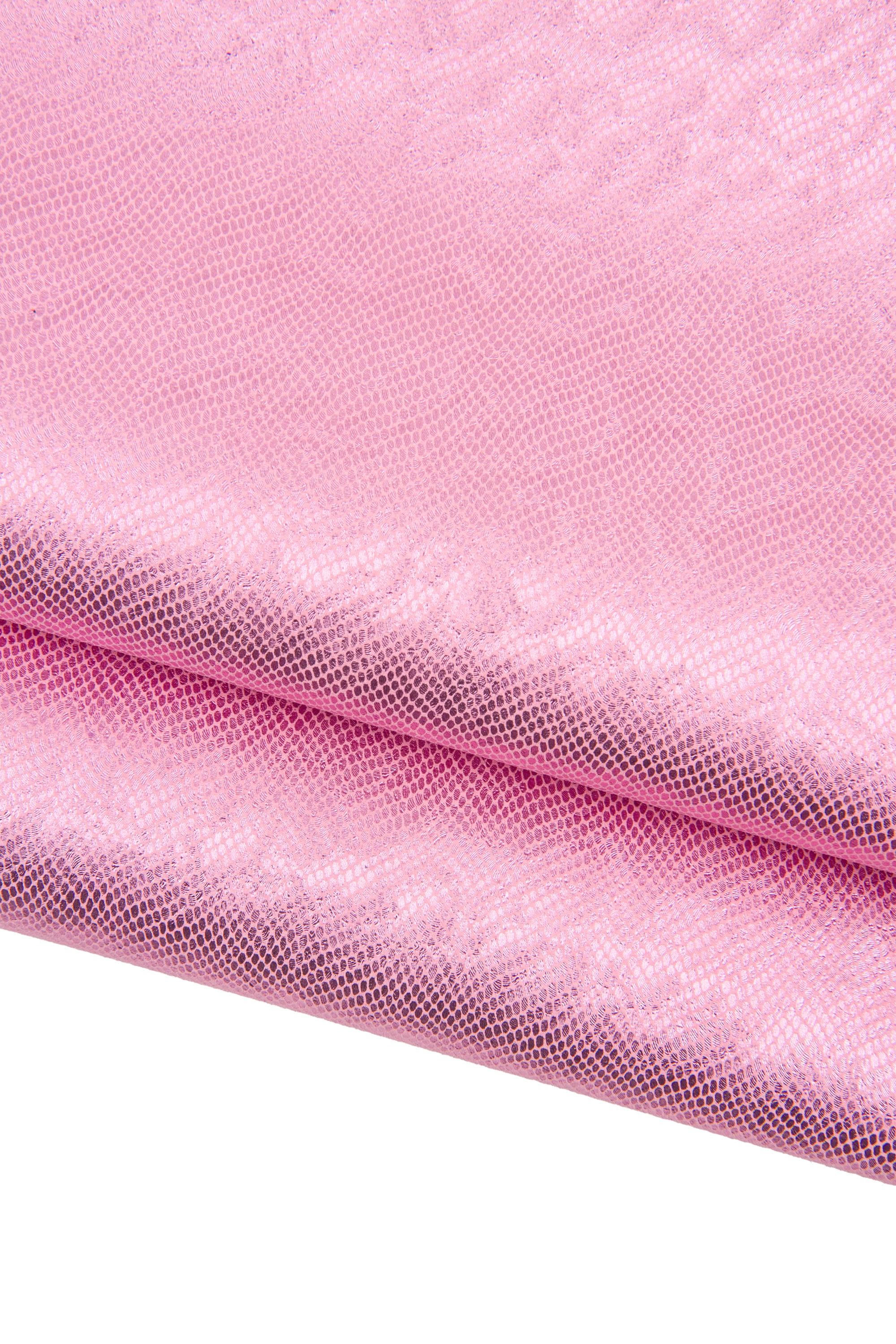 Outstanding pink snake leather hide, python printed cowhide, glossy soft reptile textured calfskin for hobbyists.