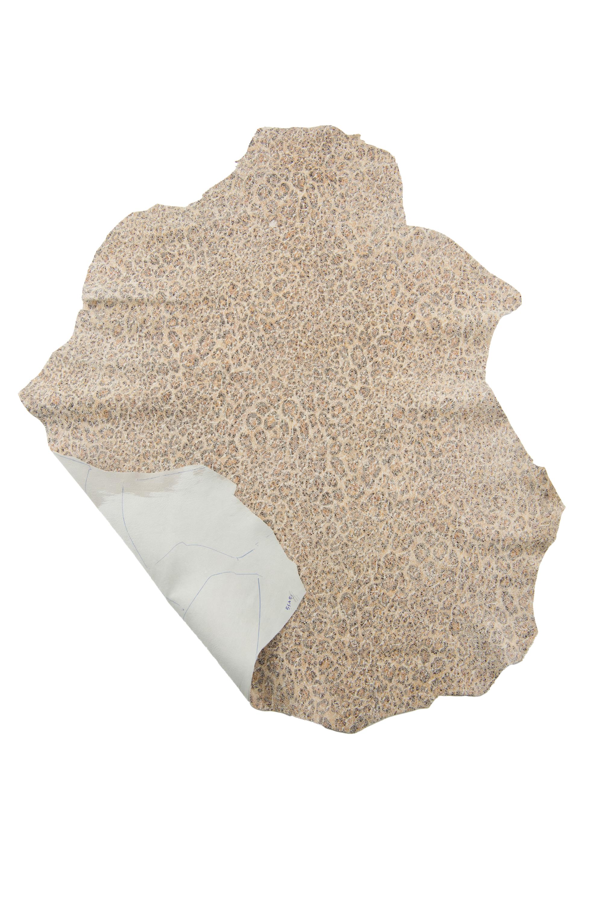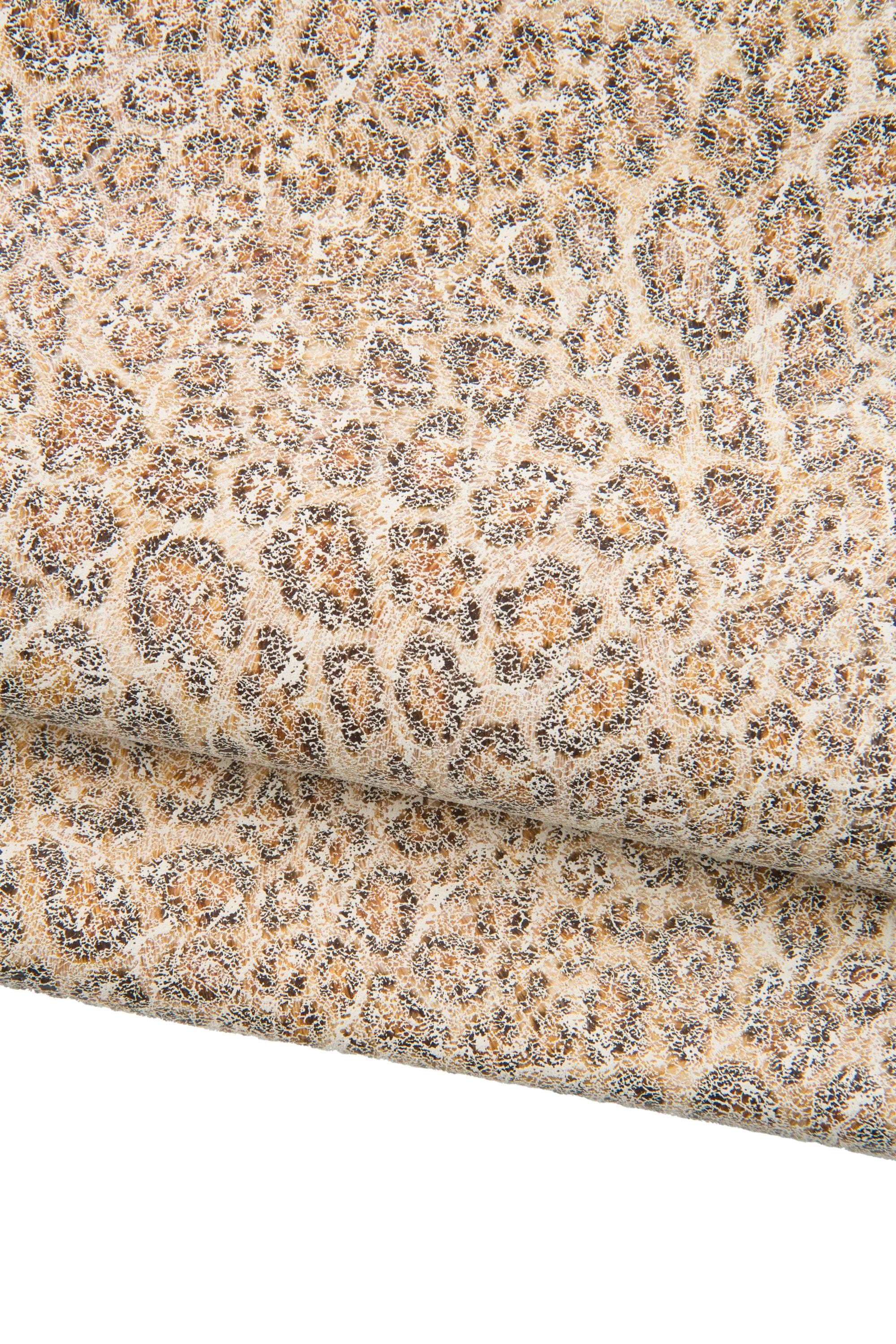 Stunning leopard textured suede goatskin, animal printed beige leather skin, crackled hide for DIY projects.