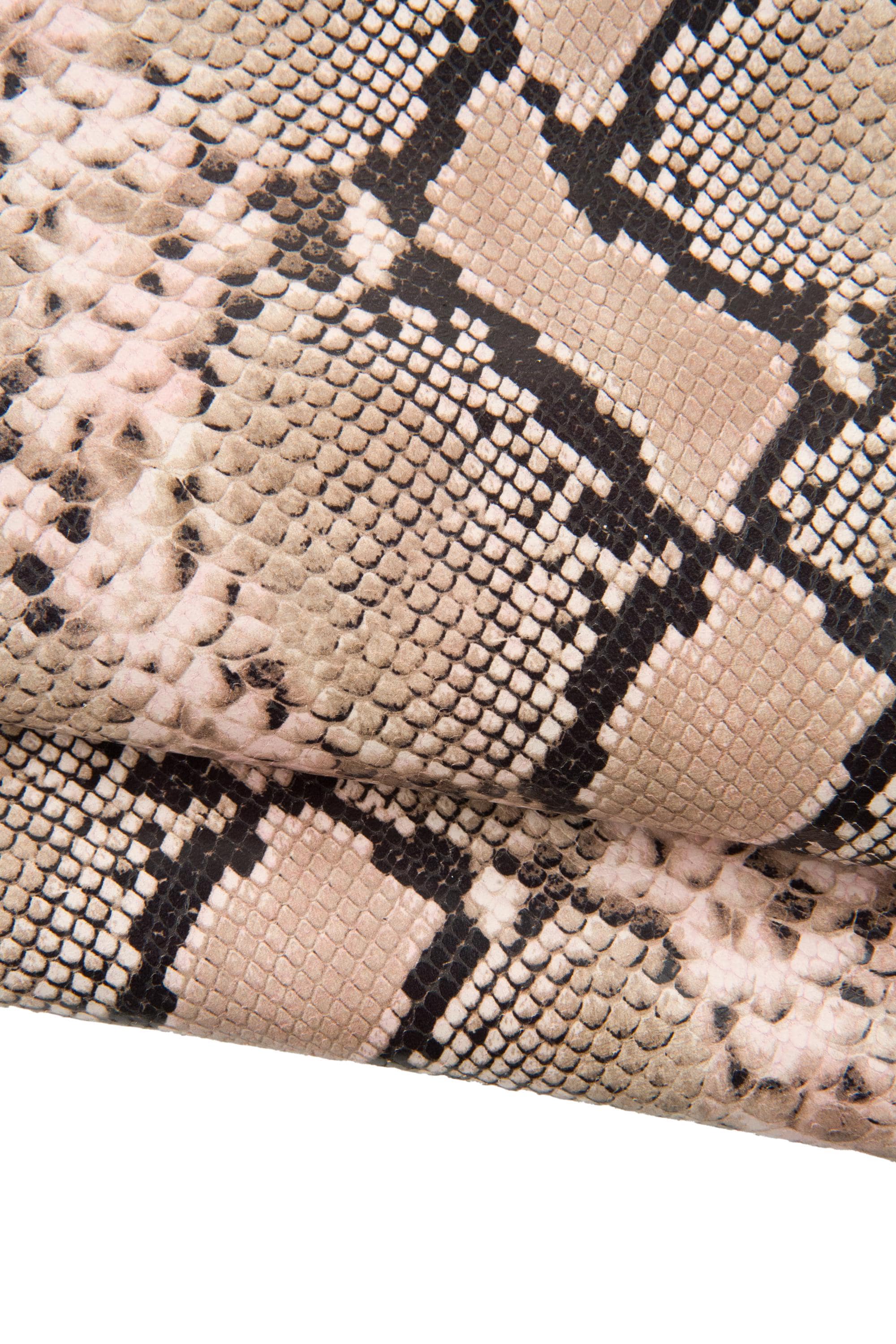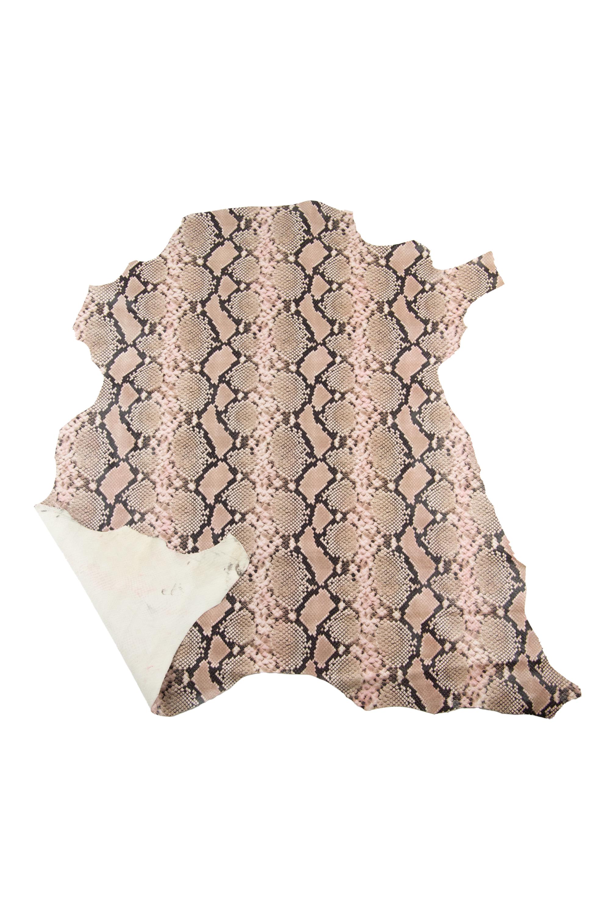 Outstanding pink - beige reptile printed leather skin python - snake textured goatskin, soft hide for DIY projects.