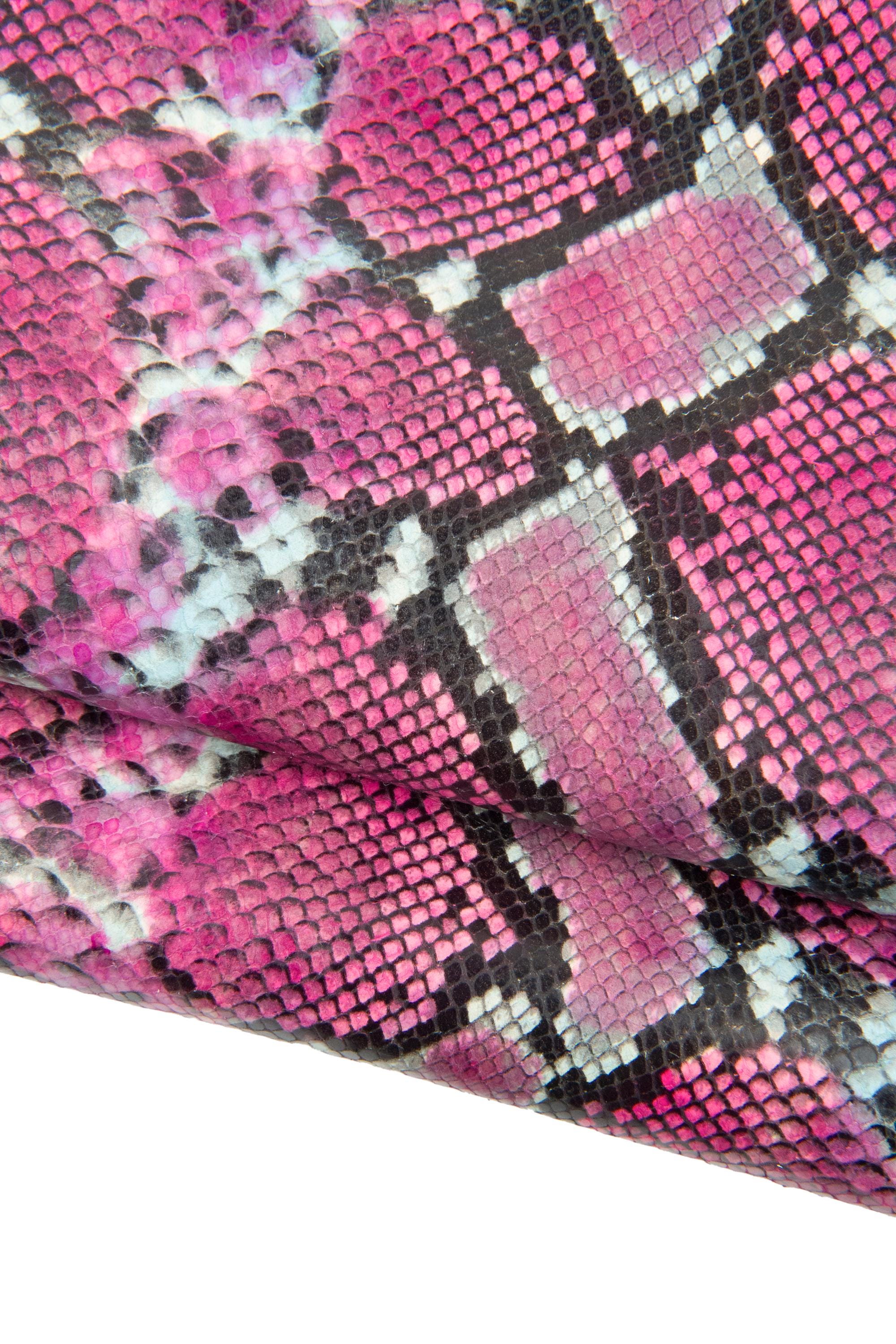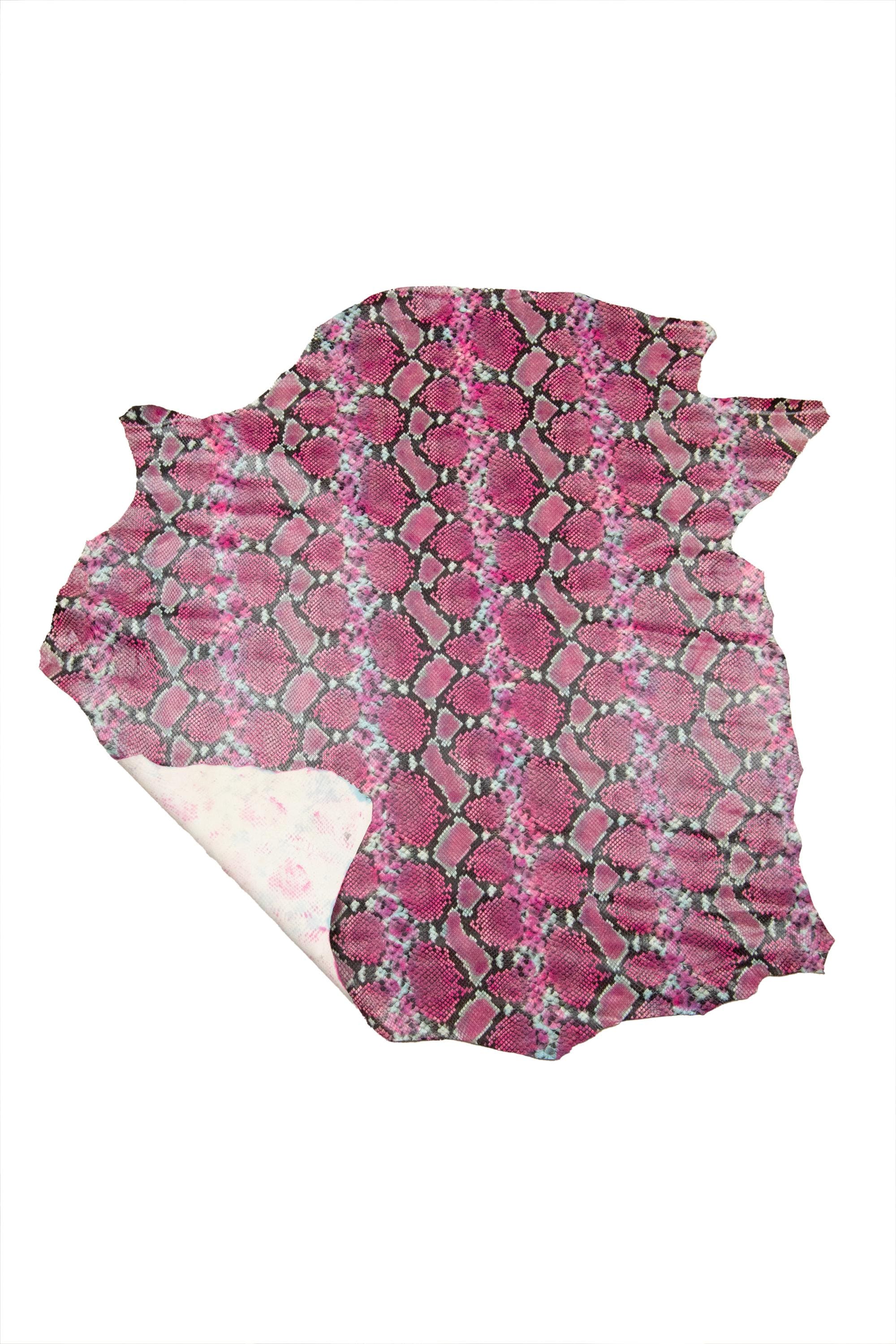 Gorgeous fuchsia python printed leather skin, magenta red reptile - snake textured hide, soft goatskin for crafting.