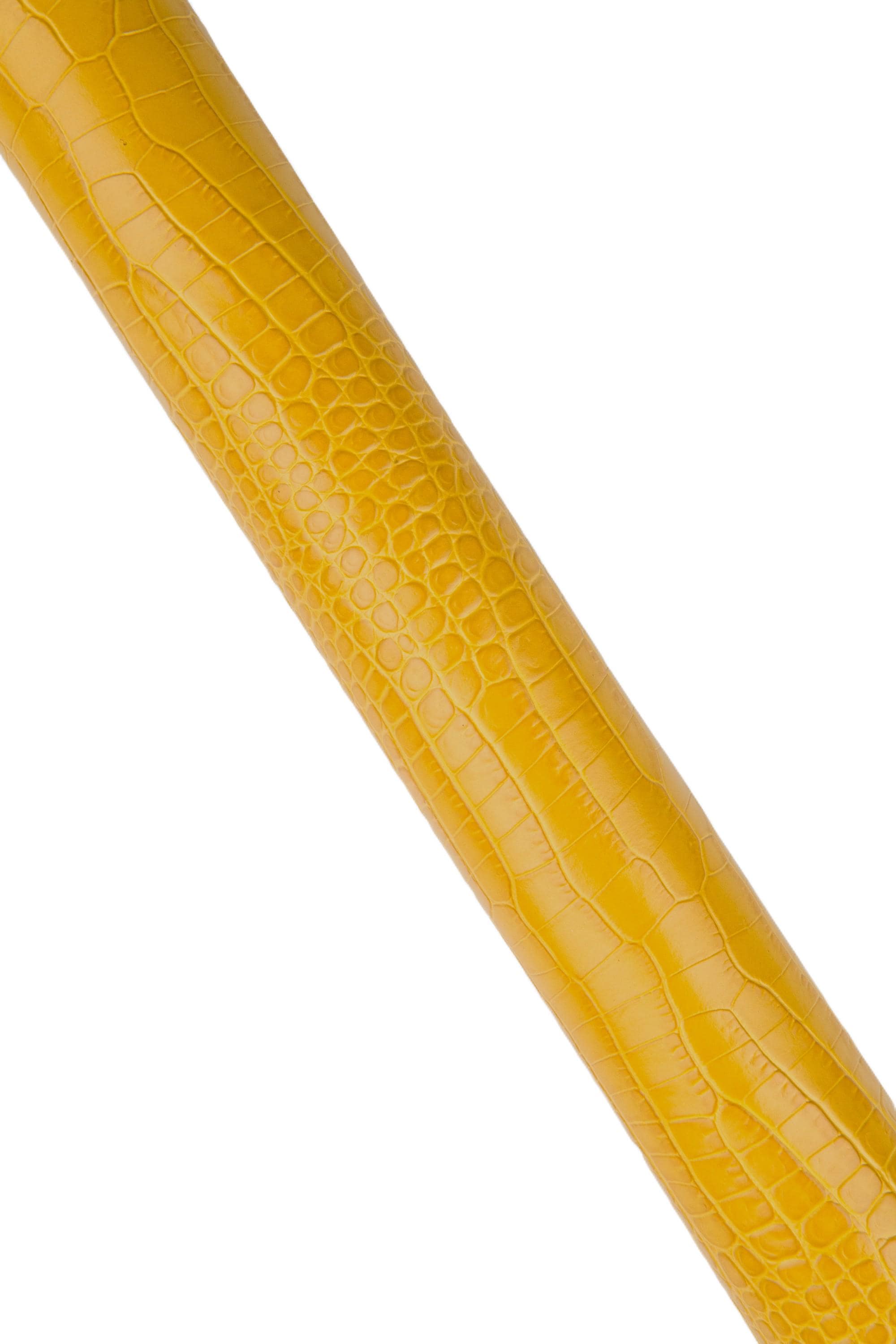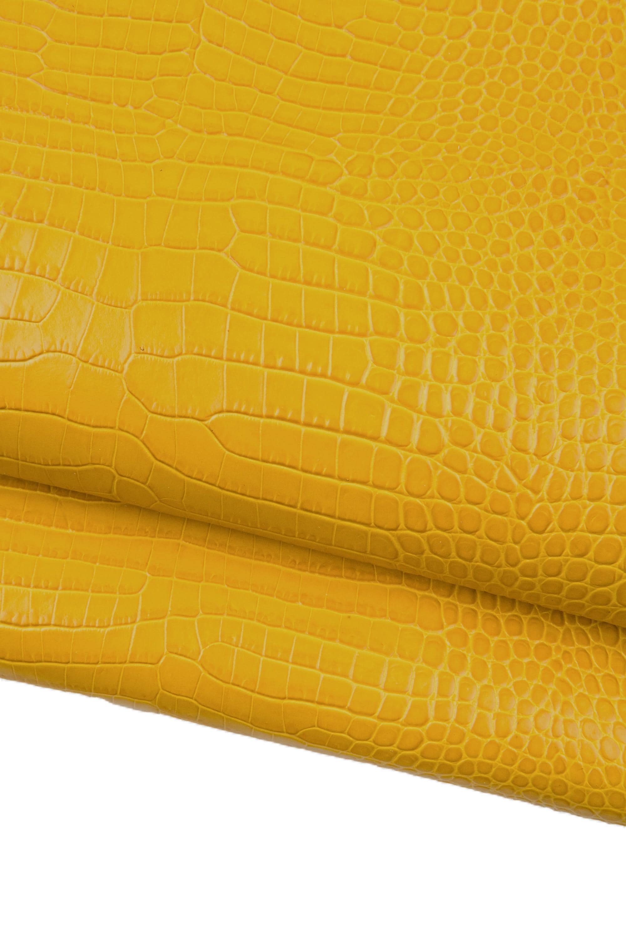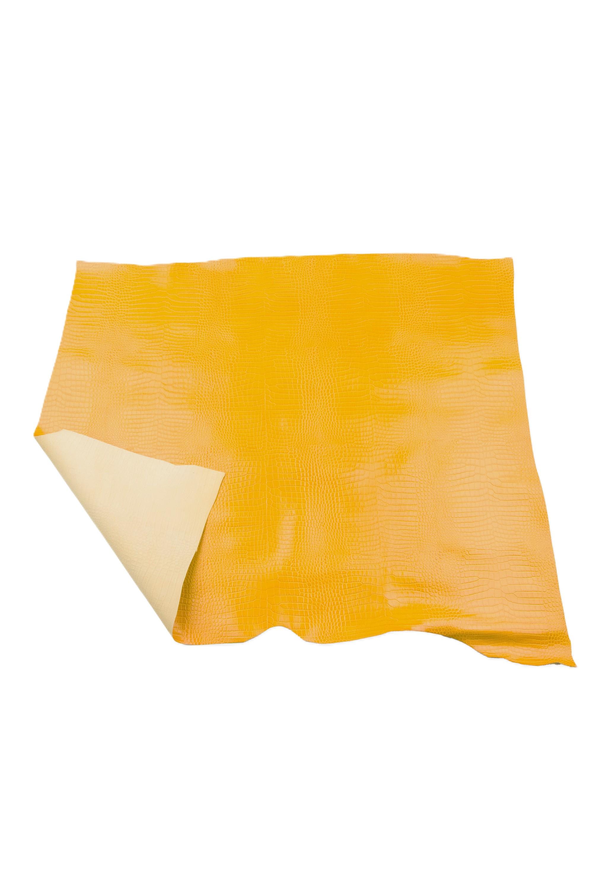 Fabulous ochre yellow crocodile printed leather hide, alligator pattern on calfskin, glossy embossed cowhide for crafters.
