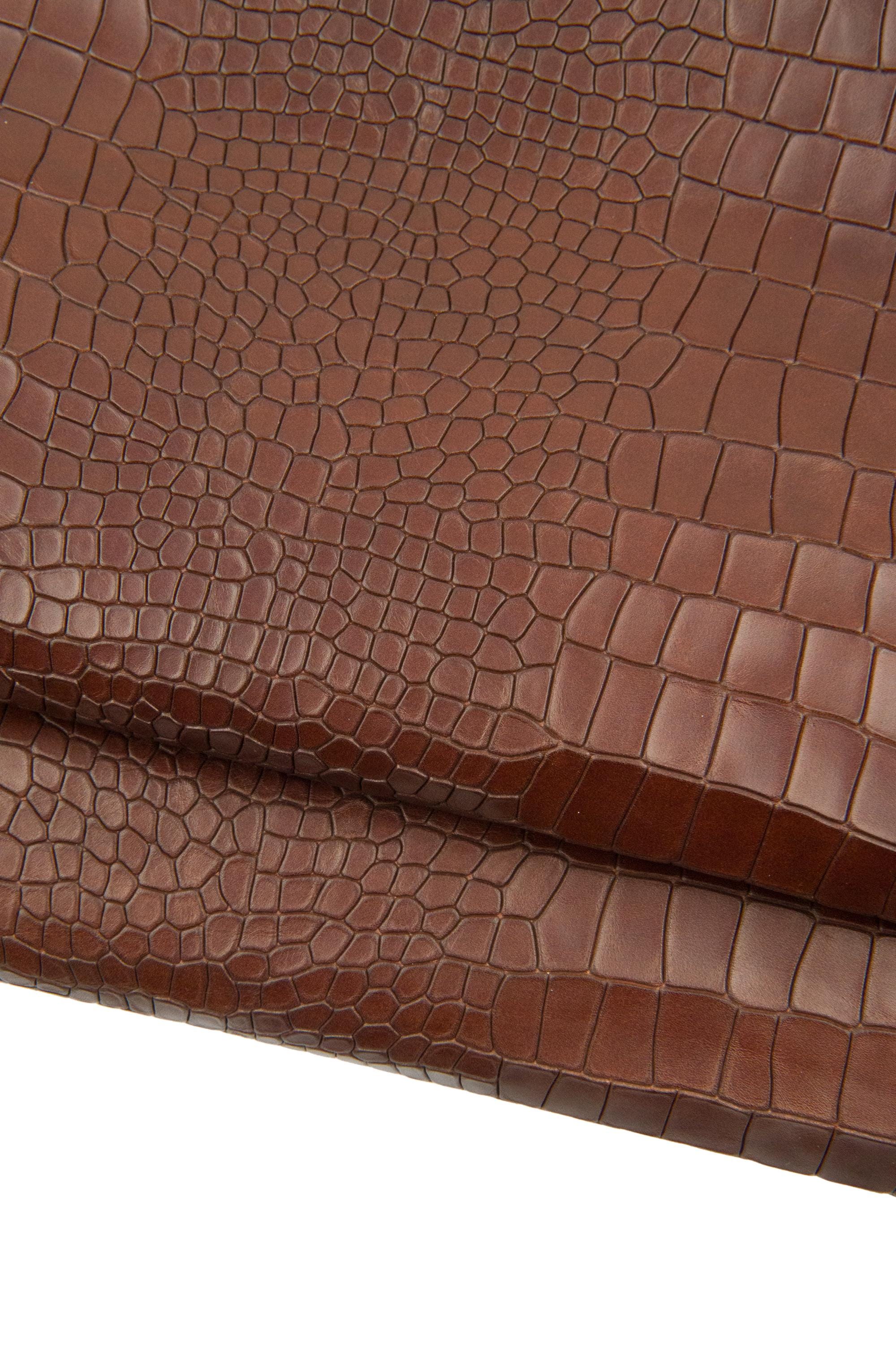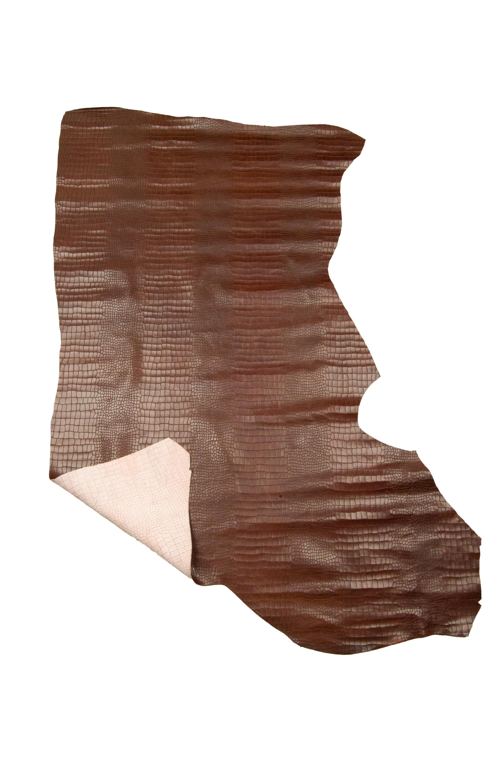 Beautiful brown calfskin with crocodile print, soft for DIY.