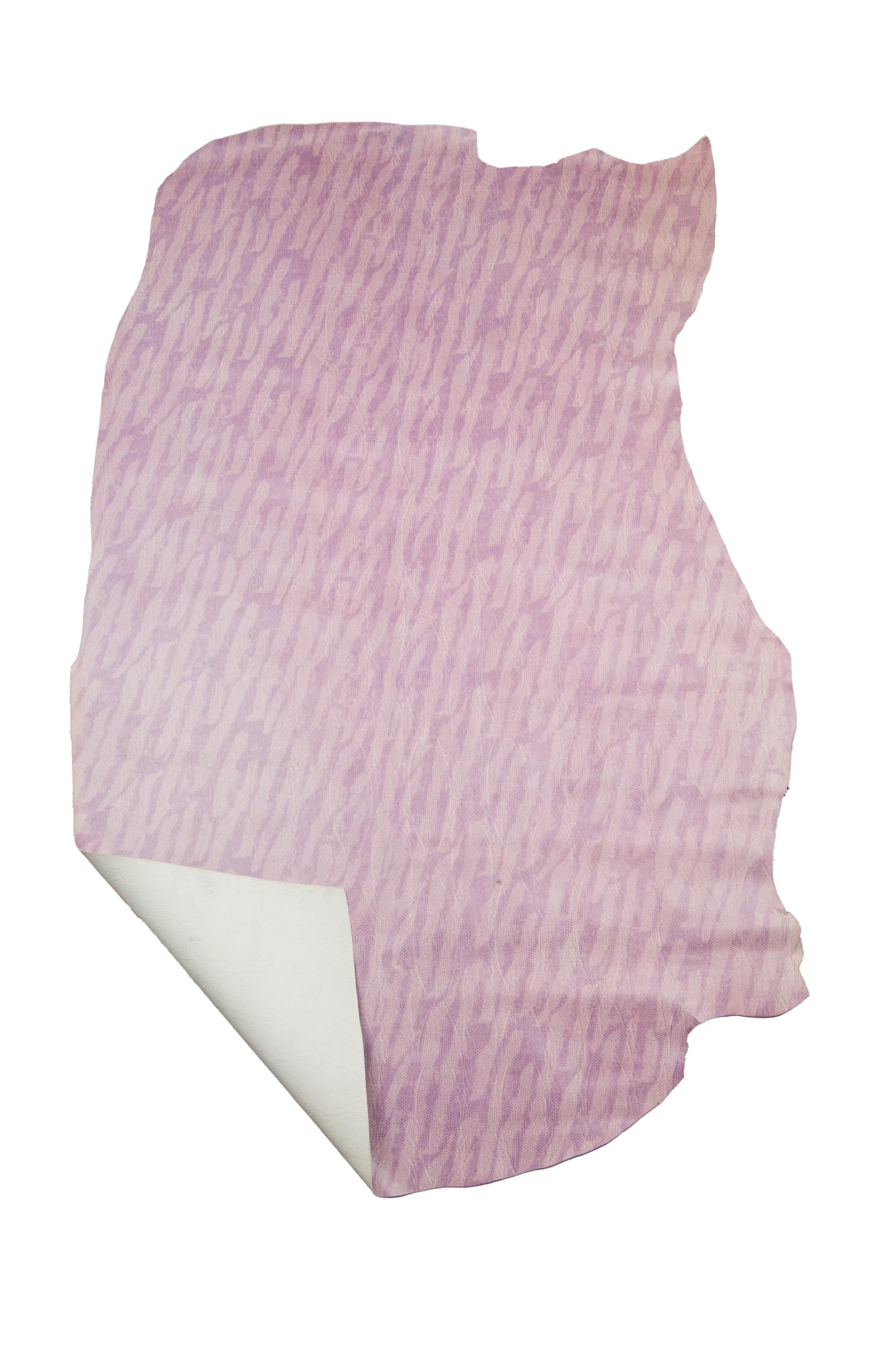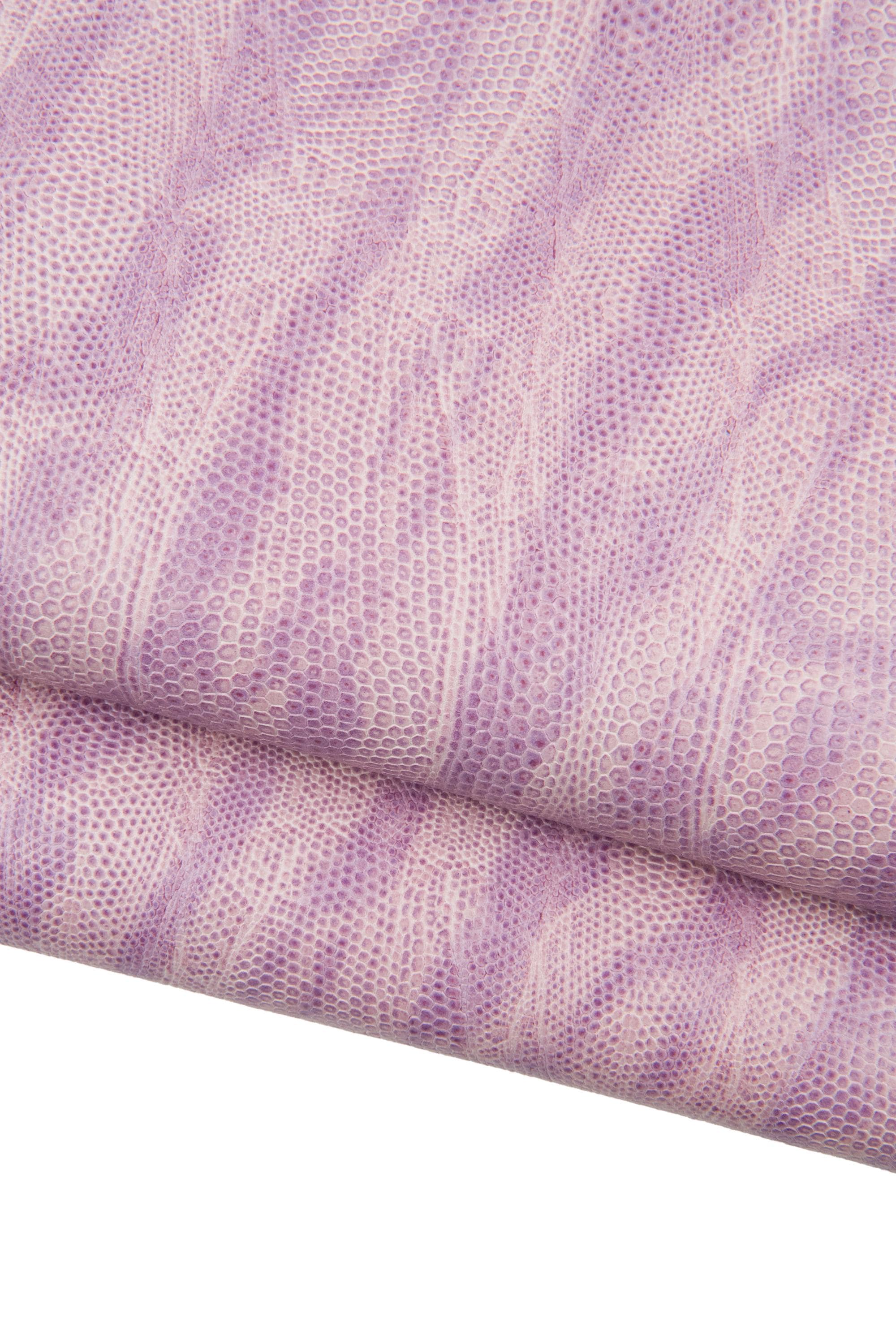 Wonderful purple lizard printed calfskin, lilac animal textured semi glossy leather hide, classic elegant cowhide for hobbyists.