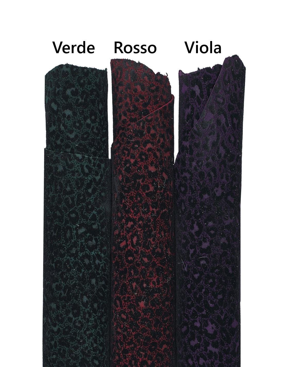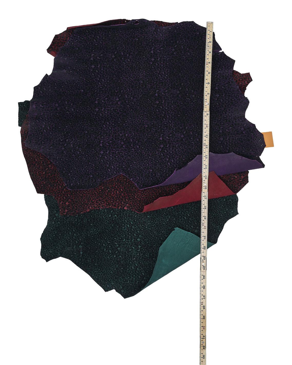 Beautiful flock cheetah textured leather skins available in 3 different colors, soft hides, ideal for crafting.