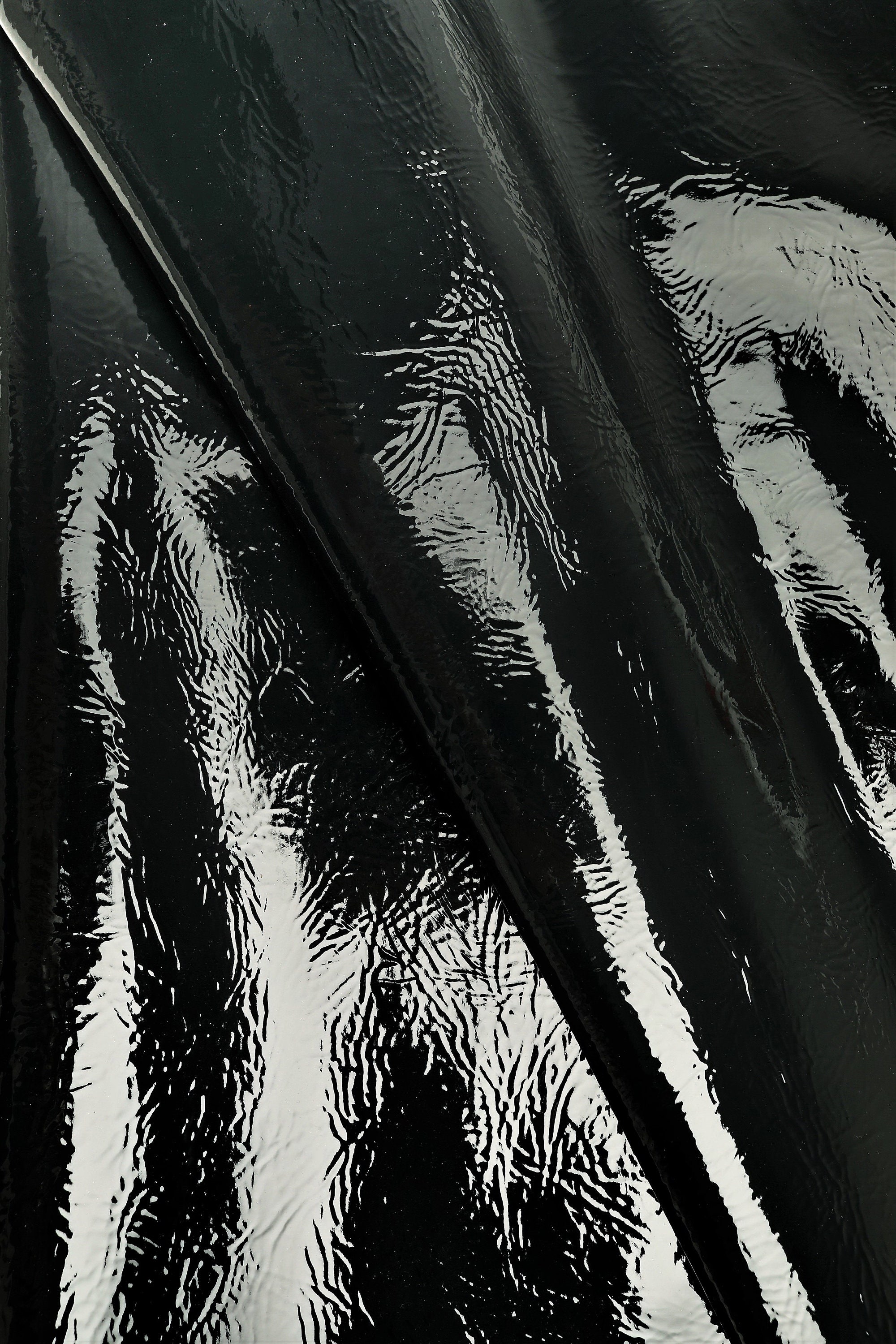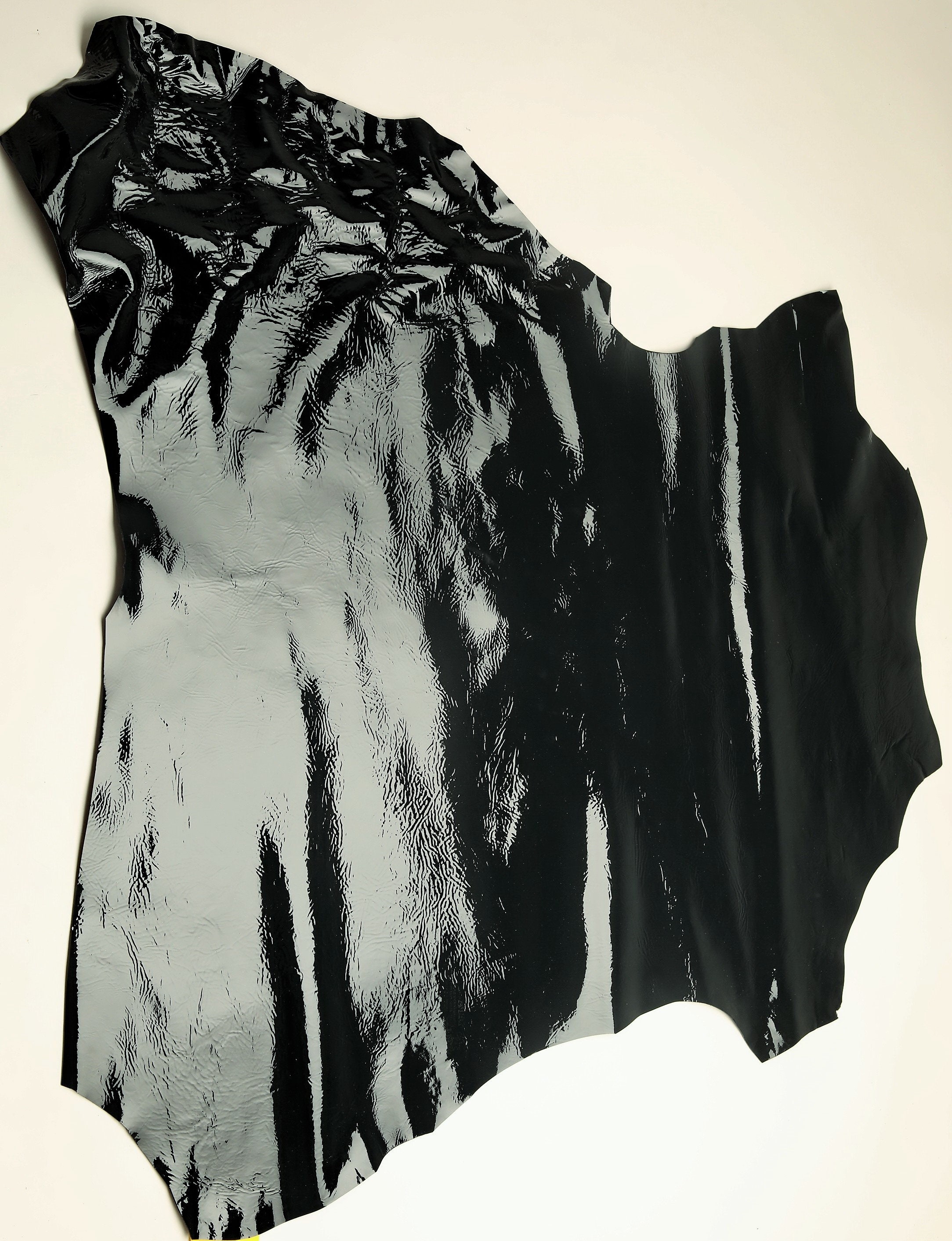 Italian leather, naplak patent wrinkled effect dark green hide, soft skin.