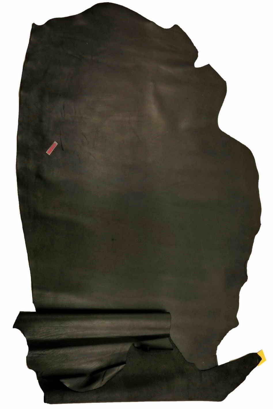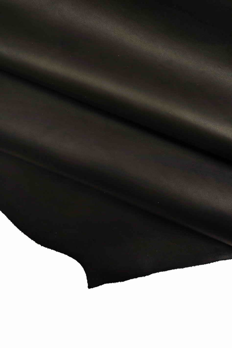 Genuine Italian black smooth leather hide, semi glossy soft calfskin, silky cowhide for crafting.